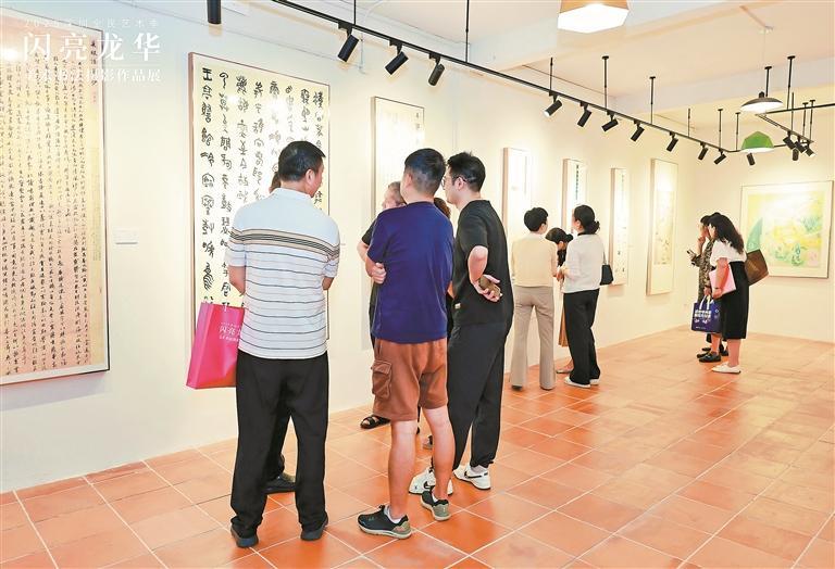 在观澜古墟龙华艺廊,嘉宾与文艺界代表及爱好者共同观摩交流。展厅内气氛热烈,观众纷纷驻足欣赏,部分创作者主动分享理念并与观众亲切互动。不少市民表示,作品贴近生活且富有感染力,让人深切感受到龙华的发展脉动与文化温度。