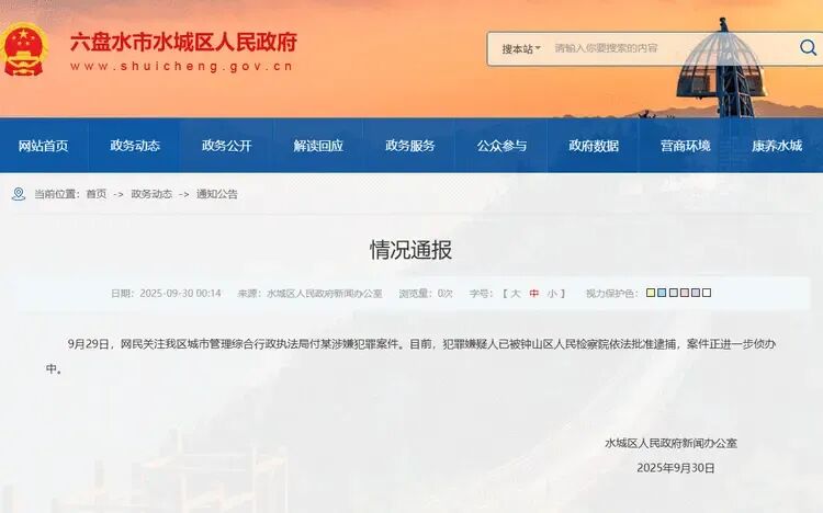 9月29日,网民关注我区城市管理综合行政执法局付某涉嫌犯罪案件。目前,犯罪嫌疑人已被钟山区人民检察院依法批准逮捕,案件正进一步侦办中。