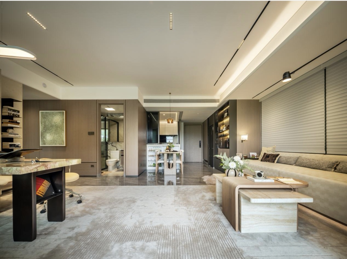 主卧配备约8.9米的L型环幕飘窗,推窗即景,四季流转入室。书房与客厅、主卧与次卧之间没有固定的边界,可以根据需要转化为横厅、双主卧,甚至三代同堂的格局。