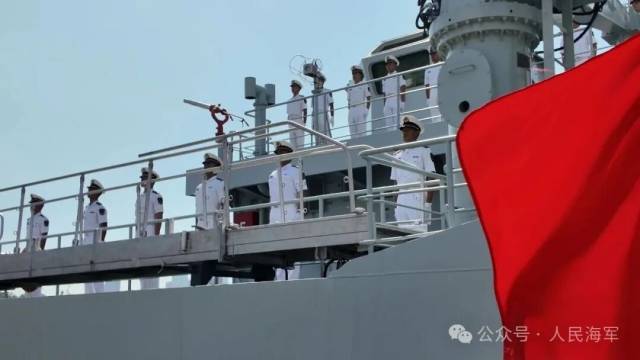 10时许,戚继光舰放下舷梯,在热烈的军乐声中,编队领导及官兵、学员代表踏上昂船洲军营码头,与驻港部队官兵代表亲切握手、互致问候。驻香港部队相关负责人和代表出席仪式。