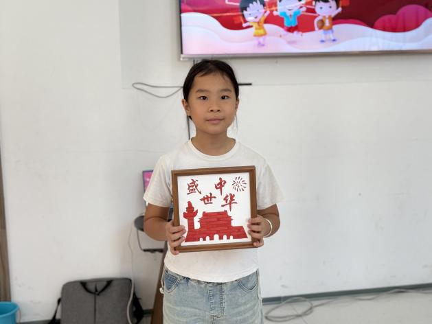 游戏过后,社工用生动易懂的语言,为孩子们讲解了国庆节的由来和国旗、国徽的含义,并指导孩子们将一根根竹条精心编织成五星红旗、天安门、长城等象征祖国的图案。一双双巧手在经纬交错间,不仅编织出美丽的图画,更编织出对祖国山河的无限热爱与赞美,一幅幅充满童真与祝福的竹编作品,成为了此次活动最珍贵的纪念。