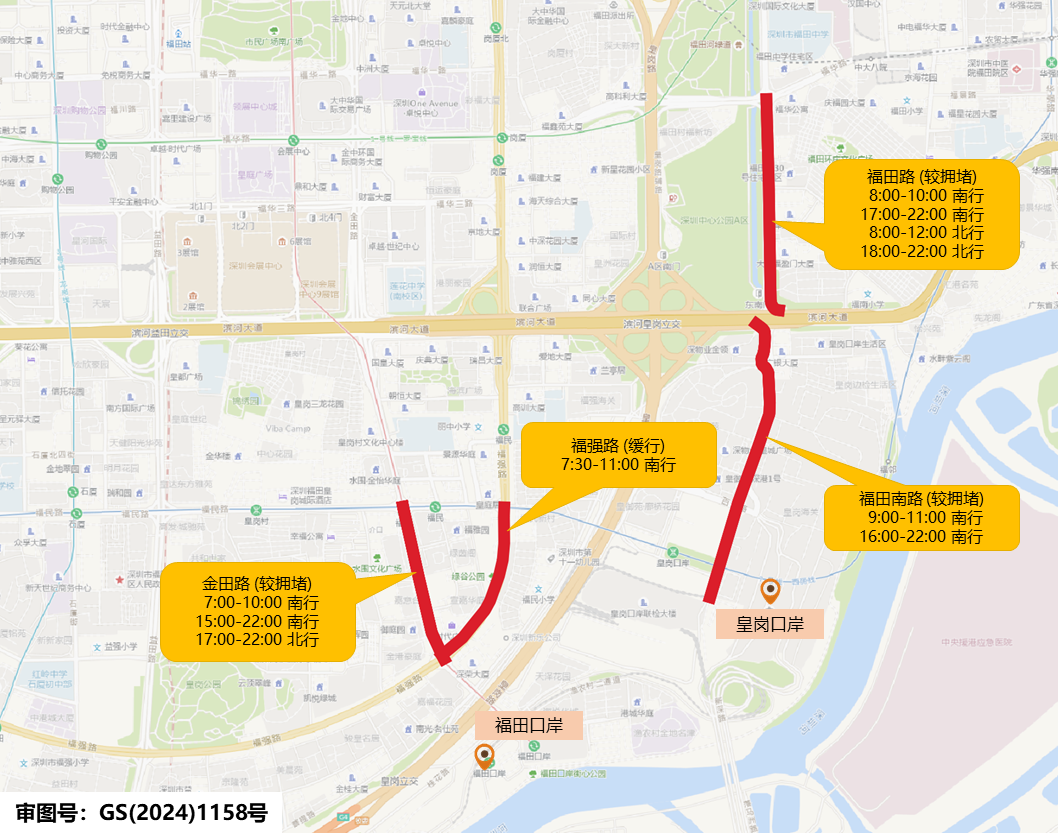 周边拥堵道路包括金田路、福田南路