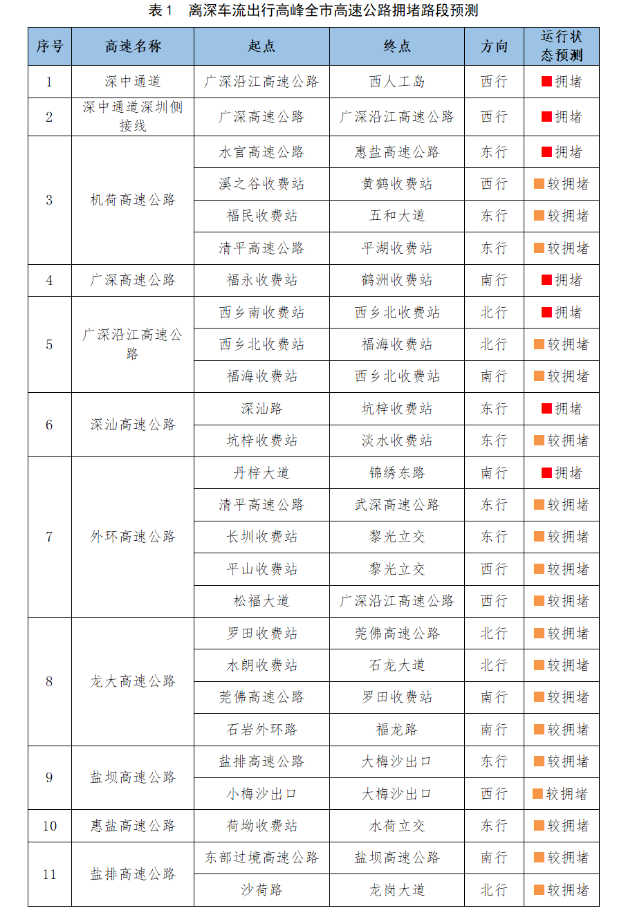 预计离深车流出行高峰期