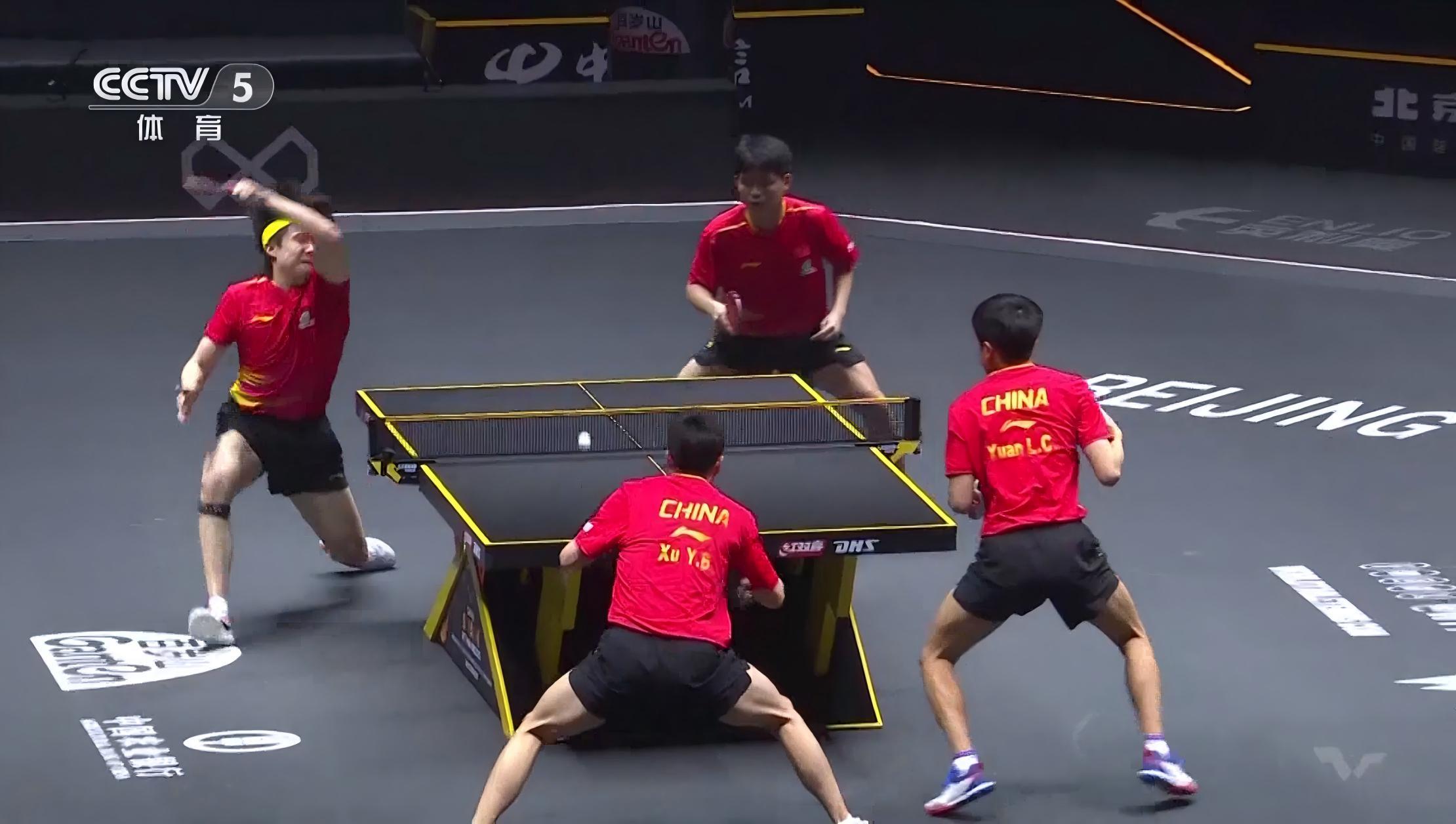 王楚钦/林诗栋3比0(11-4、11-9、11-7)战胜徐瑛彬/袁励岑,锁定一个半决赛席位。