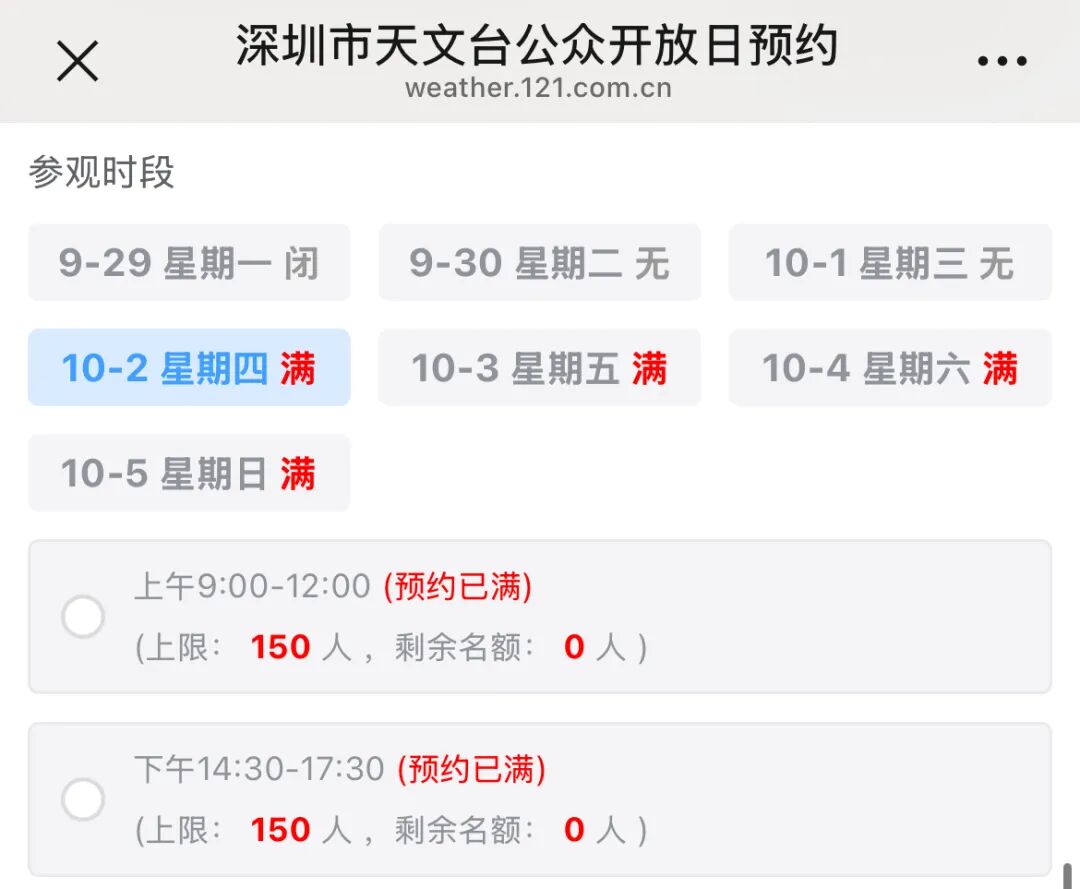 记者查询“深圳天文”公众号发现,目前放出的名额已经全部约满。