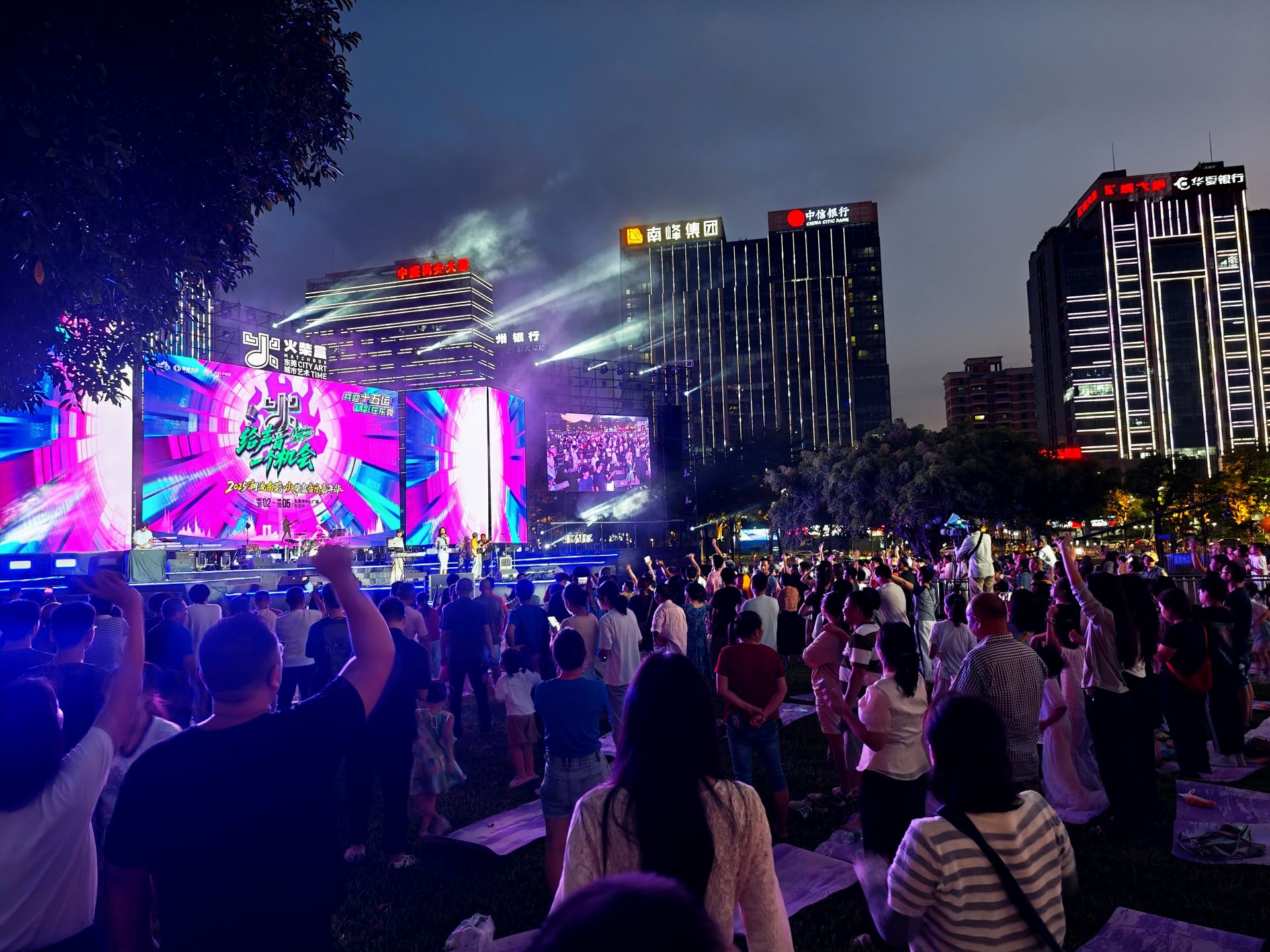 10月2日,期待已久的“共迎十五运 精彩在东莞”2025潮流东莞·火柴盒音乐嘉年华在东莞市中心广场大草坪盛大开幕,超过5000人次参与了这场视听盛宴,共同唱响“共迎十五运”好声音,充分彰显东莞这座城市的热情与活力。互动环节来自莞城的新莞人雷女士对着主持人唱出“我爱你中国,我爱你东莞”。主持人领唱“就这个feel 倍儿爽 倍儿爽”台下千名观众随即回应“天空飘来五个字儿,那都不是事儿”现场灯光璀璨夺目,人潮如织,耳熟能详的经典旋律激发了数千市民的热情跟唱。活动由东莞市文化广电旅游体育局主办、东莞市文化馆承办,东莞市文化馆各镇街(园区)分馆协办。