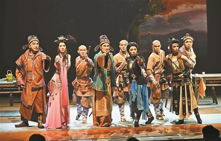 据介绍,剧中不仅展现出唱、念、做、打等原汁原味的粤剧特色,而且在服道化方面高度还原游戏,为跨界融合写下生动注脚。此外,作为一部主打武侠的粤剧,剧中的武打也颇具看点,偏重“硬桥硬马”的粤剧南派武打得以淋漓尽致地展示,群戏的武打设计也颇具看点,场面宏大,动作利落。音乐方面,除了有优美的粤剧唱词之外,也融入不少武侠风的新粤曲,让人耳目一新。