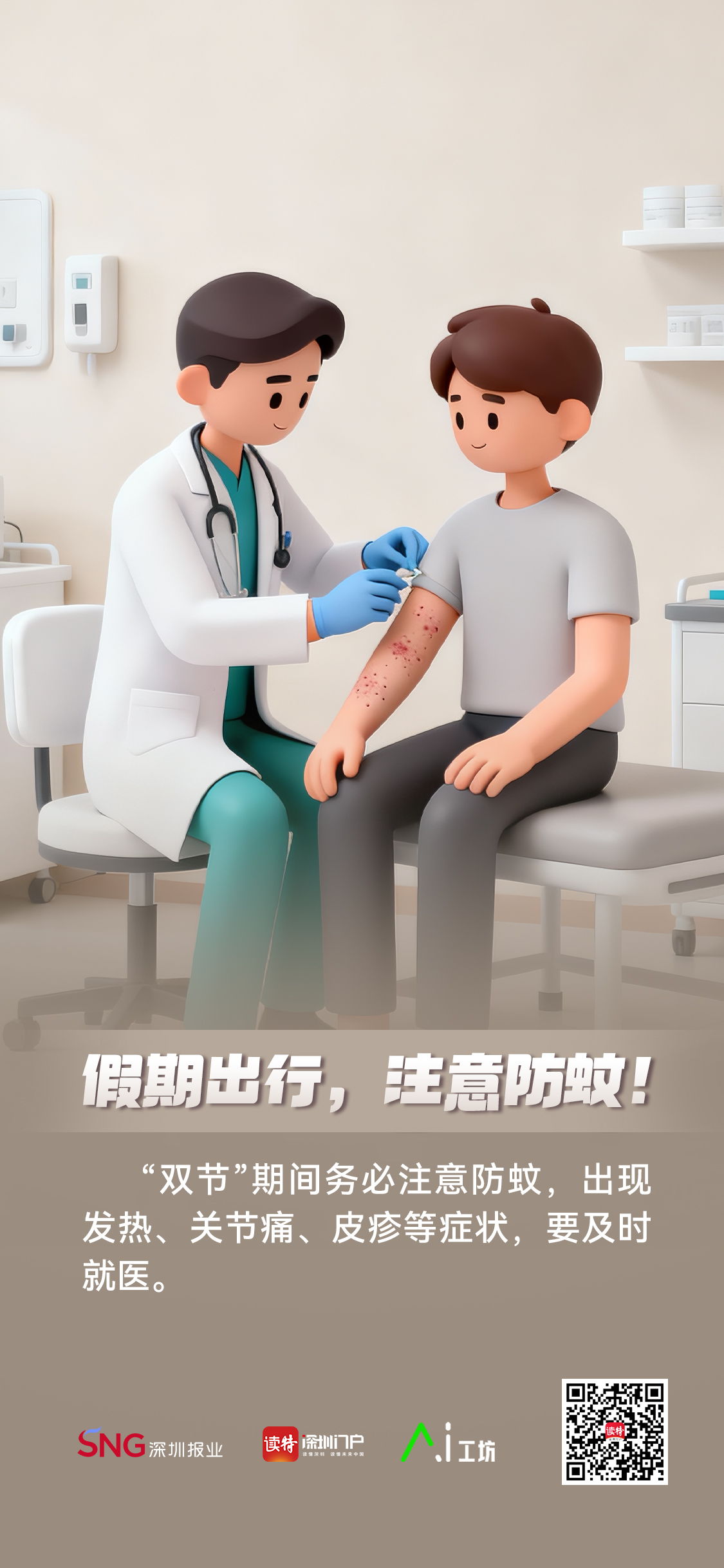 近日,深圳疾控提醒市民朋友,“双节”期间务必注意防蚊,出现发热、关节痛、皮疹等症状,要及时就医。