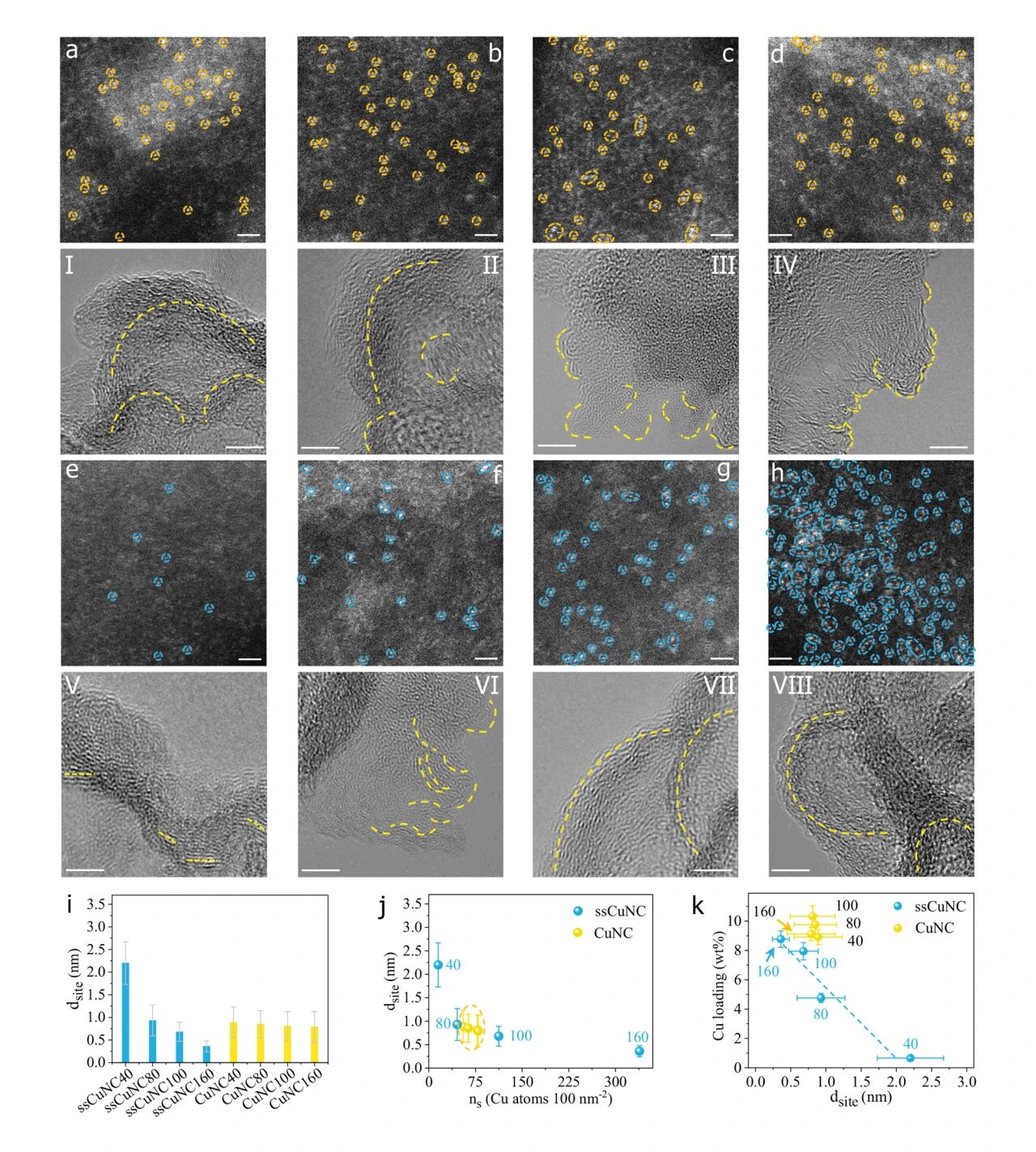 新型催化剂ssCuNC和传统催化剂CuNC SACs的位点距离效应与铜(Cu)负载量的相关性