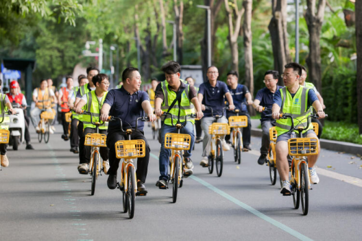 当日下午,一场别开生面的“骑行看南山”活动率先拉开帷幕。由南山区住建局工作人员、项目管理人员及建筑工友组成的骑行队伍,从K11商场出发,沿太子湾绿道一路前行,最终抵达中建一局自贸时代中心项目部。骑行途中,前海蛇口自贸区的繁忙景象、前海片区的建设热潮尽收眼底,工友们亲身感受着自己参与铸造的城市发展成就,自豪感与归属感油然而生。