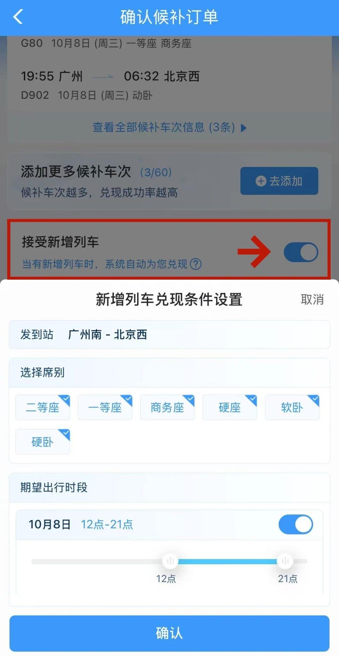 这是一个关键技巧。节假日期间,铁路部门会根据客流情况增开临时旅客列车。在提交候补订单时,务必勾选“接受新增列车”,这些新增加列车的车票会优先供给已提交候补的旅客。