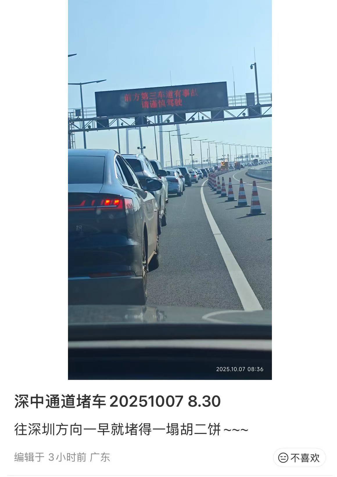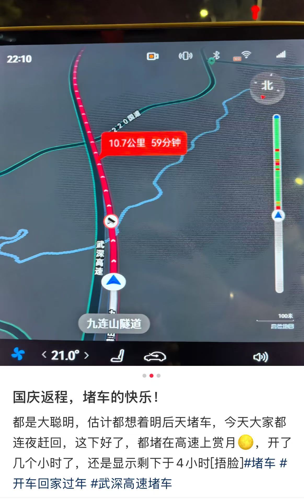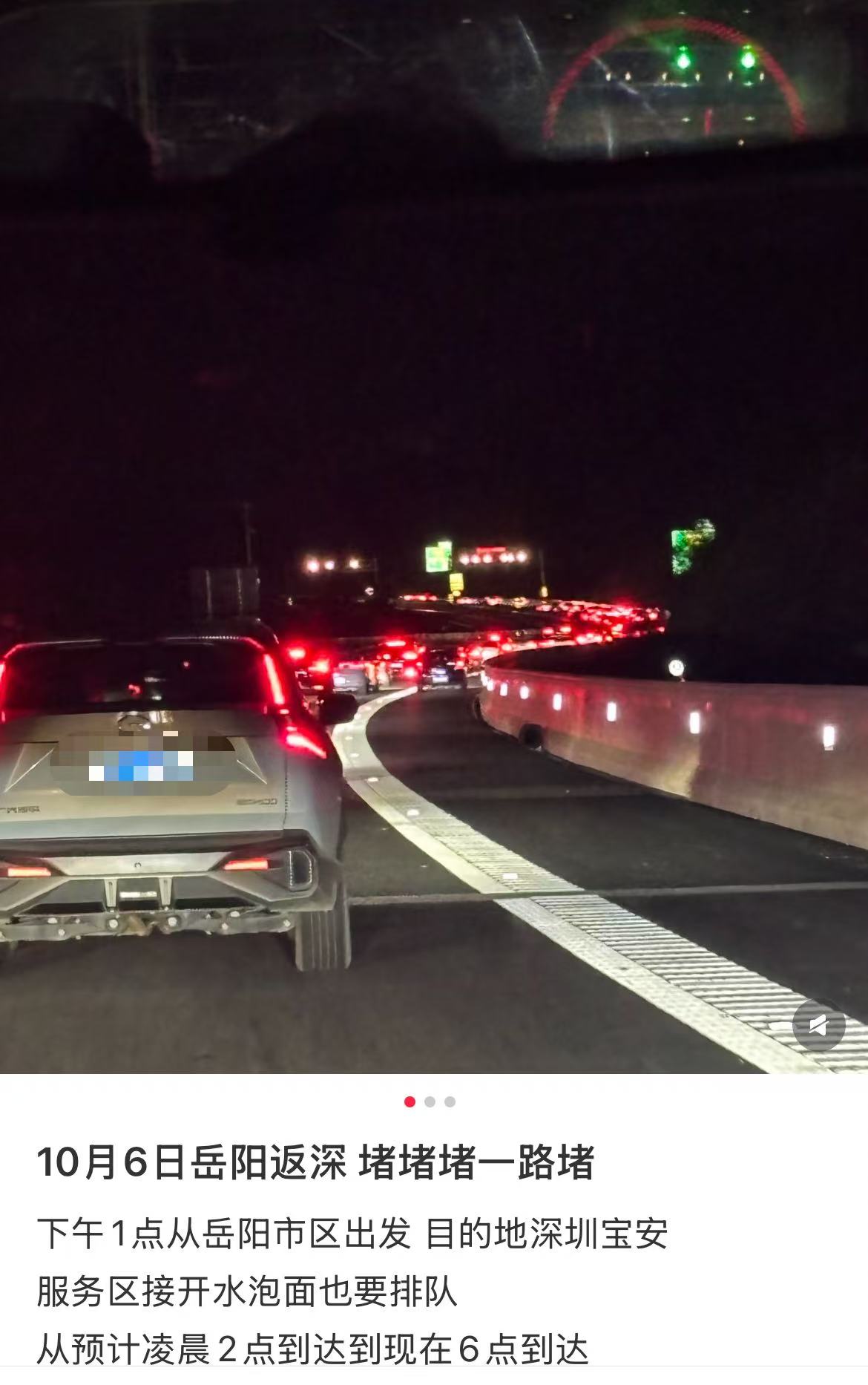 已经不少返深的网友堵在高速上了