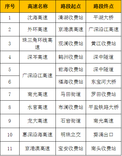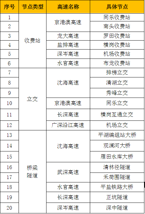 其中,除沈海高速、水官高速、惠深沿海高速拥堵路段外,均为与外市衔接高速公路。