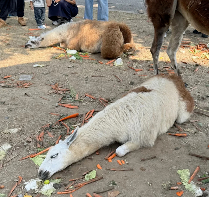 真吃不动了!羊驼被喂到倒地翻白眼?动物园回应→
