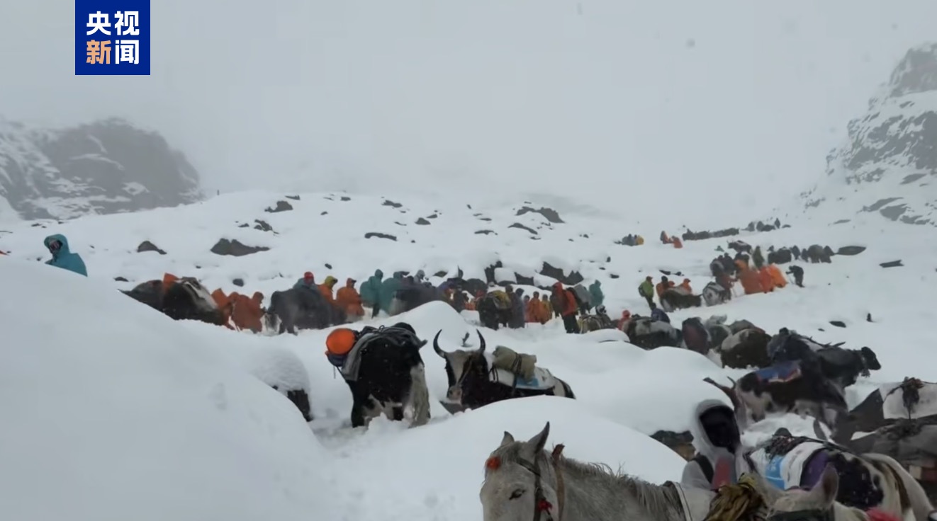 10月4日,位于西藏日喀则市定日县境内的珠峰东坡营地突降暴雪,导致大批游客被困无法下山。
