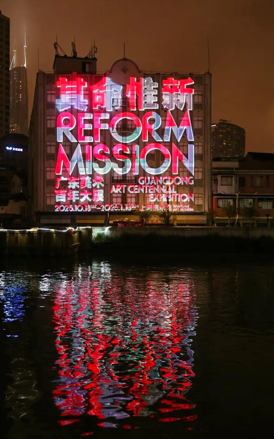 作为第二十四届中国上海国际艺术节“粤港澳大湾区文化周”的重要板块,“其命惟新——广东美术百年大展(2025上海)”将于2025年10月18日至2026年1月18日在上海世博园中华艺术宫举办。而这场艺术盛宴的序章,已经悄然在静安苏州河畔拉开——一场光影展演正在苏河光映厅璀璨上演,国庆假期期间每晚18时至22时,游客可以在苏州河畔流动的光影中感受岭南文化深厚的底蕴与当代艺术迸发的活力。