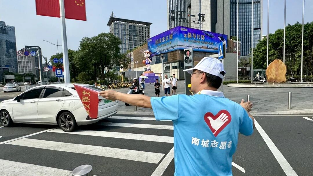 面对国庆中秋双节叠加的出行高峰,东莞交警提前谋划、科学部署,用责任构筑起节日里最温暖的“安全防线”;石龙交通运输分局着力优化东莞站即停即走区与快速接驳区的交通秩序,细化车辆分流引导,提高车辆周转效率,确保车道畅通。这些平凡岗位上的不平凡坚守,与少年们手中的鲜花国旗相互映照,共同构成了节日里最动人的风景;南城鸿福元美东路口和国贸红绿灯路口人头攒动,一抹鲜亮的“志愿蓝”格外显眼,10余名志愿者放弃假期,为市民游客做好文明引导。
