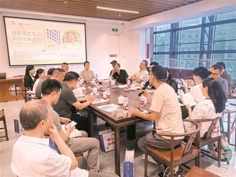 近日,宝安作家赵静的散文集《命的门》新书研讨分享会在宝安区文化馆举行。深圳市作协驻会副主席、秘书长秦锦屏,宝安区作协主席郭建勋、副主席郭海鸿,宝安区评论家协会主席唐小林等30多位作家与读者参加了此次活动。《命的门》共9篇文章,既是一部女性个人心灵史,也是一部家族百年漂泊史。时代巨流奔涌,代际纠缠更迭,生命罅隙中光芒透射。赵静在现场分享了创作背后的故事与感悟,嘉宾们围绕此书各抒己见,观点精彩纷呈。