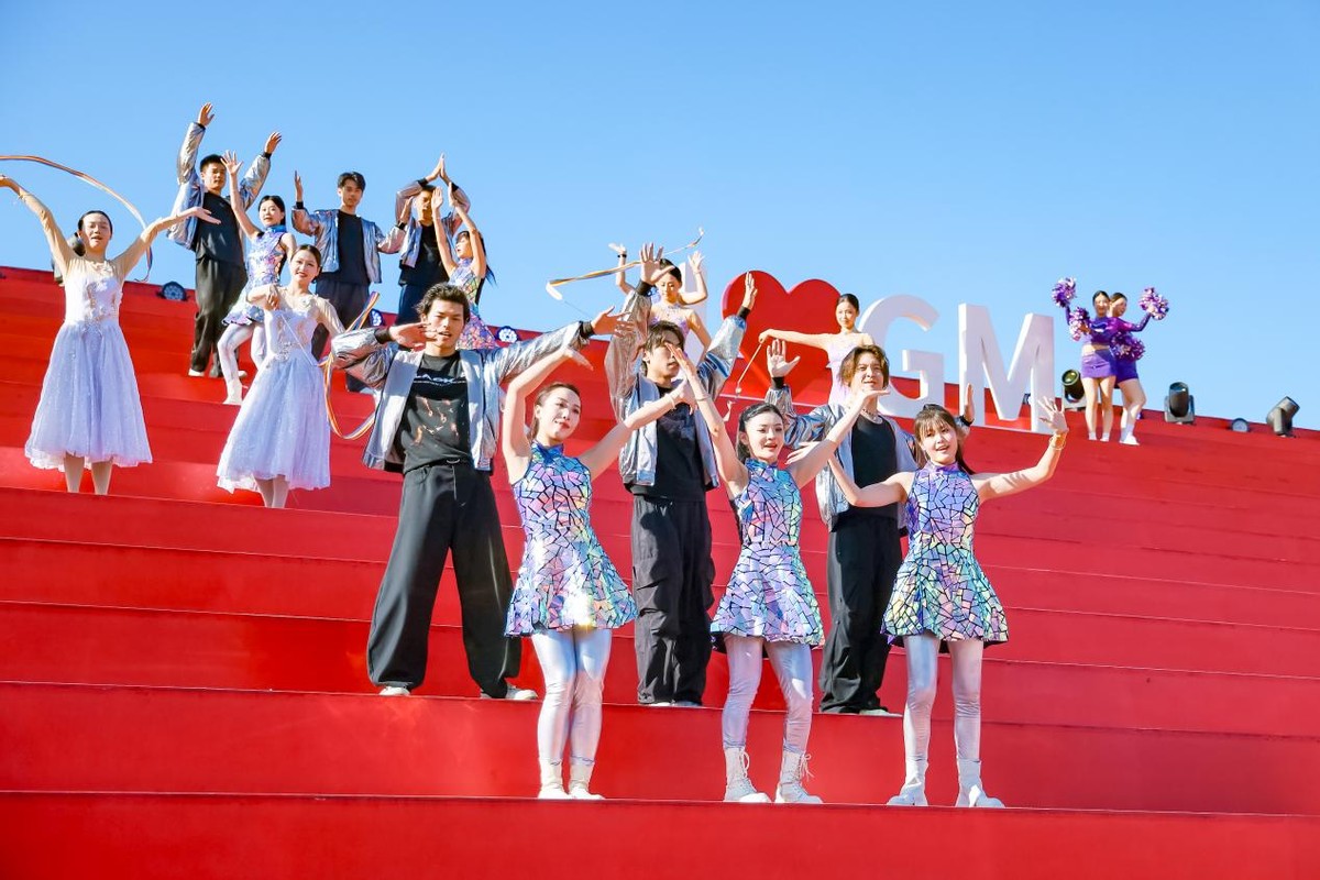 北广场“心动律影·潮舞集结”则上演“刚柔对决”,街舞表演者踩着强劲鼓点,以顿挫有力的定格、爆发力十足的地板动作点燃气氛;艺术体操表演者手持彩带,用柔美线条勾勒优雅姿态,两种艺术形式碰撞出独特火花。