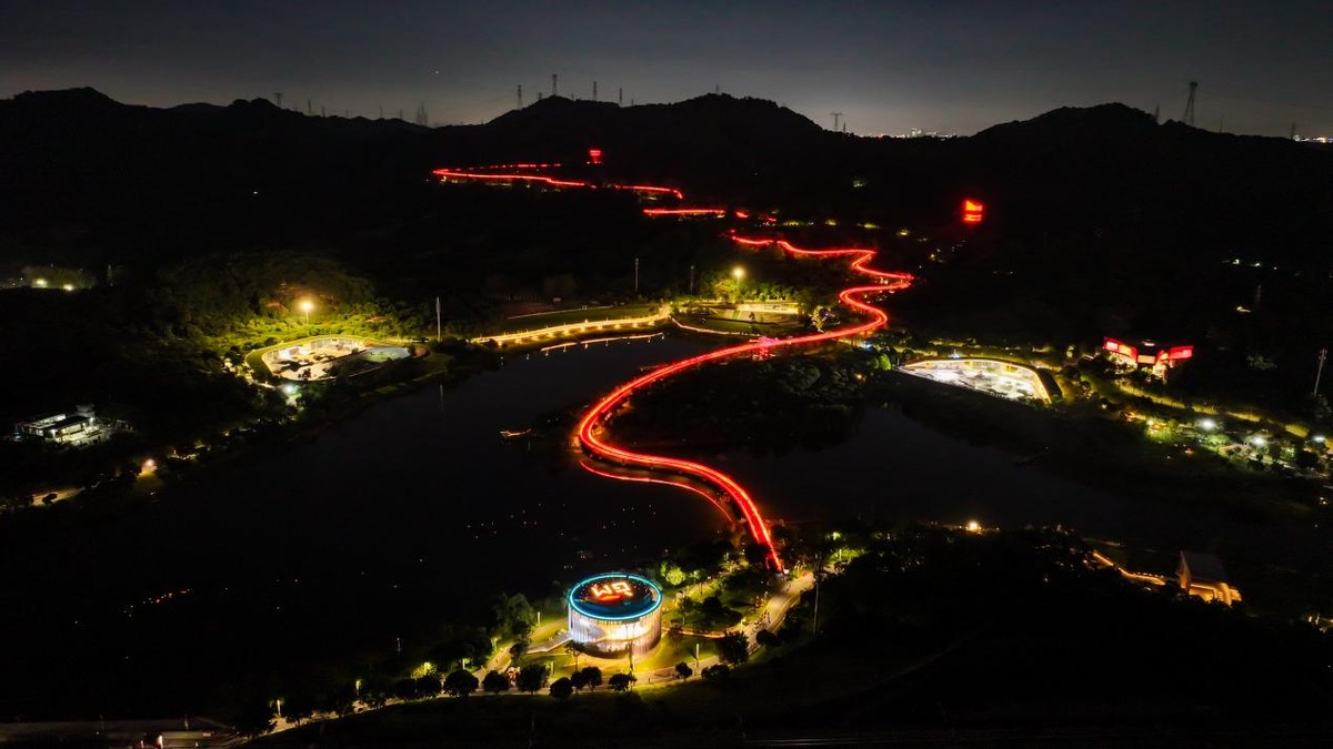 三组以“十五运会”为主题的夜光装置——“马住光明”“足够光明”“骑遇光明”则是“运动精神+城市特色”的巧妙表达。也成为公园夜间的“打卡地标”。