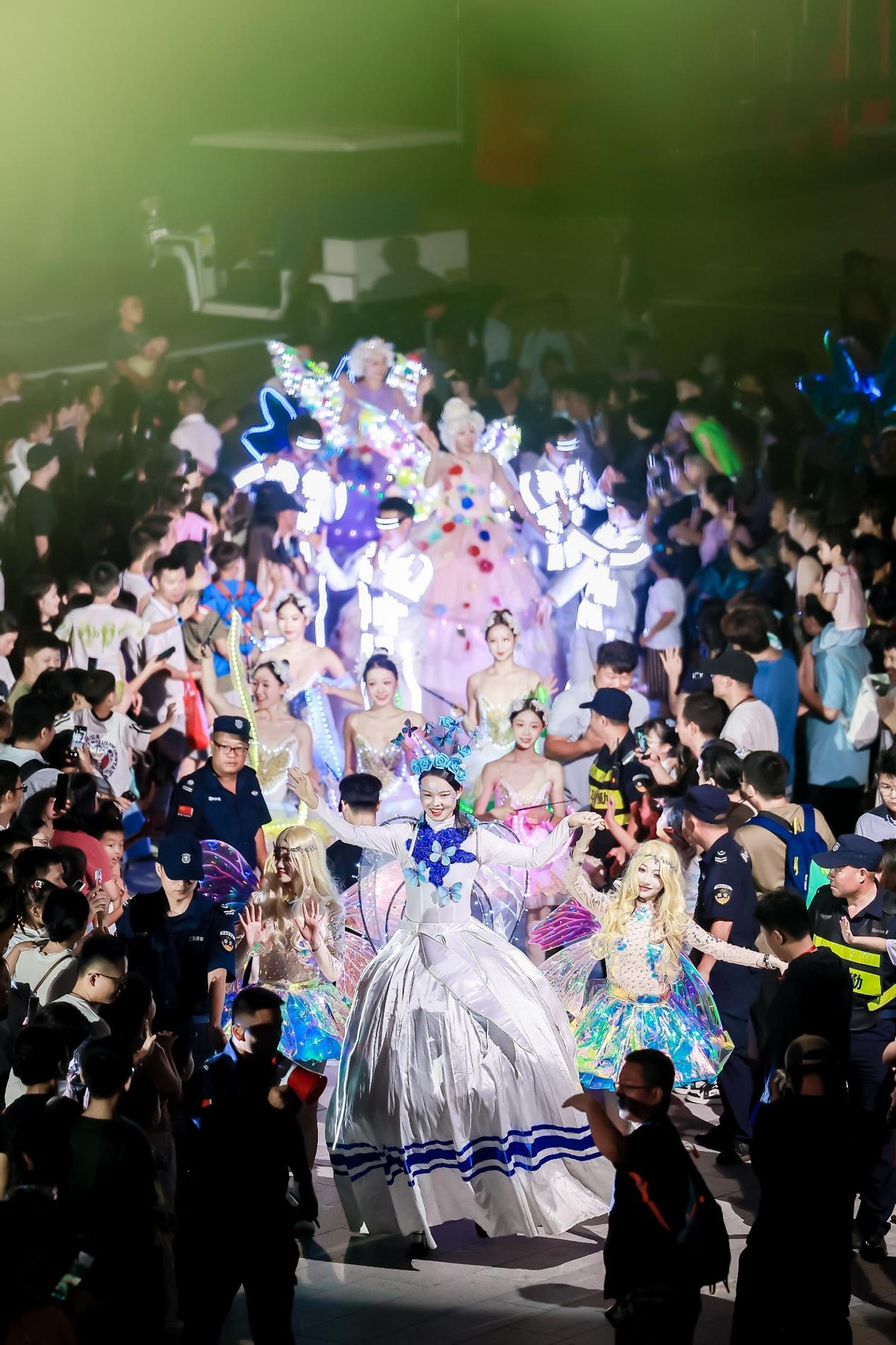 南广场“虹动拾光・跷影舞聚”在夜色里编织梦幻夜光派对。