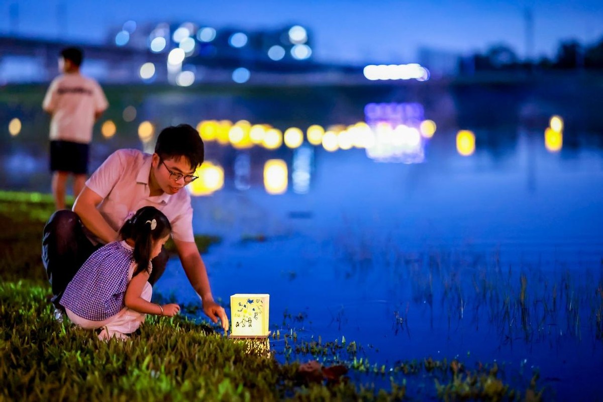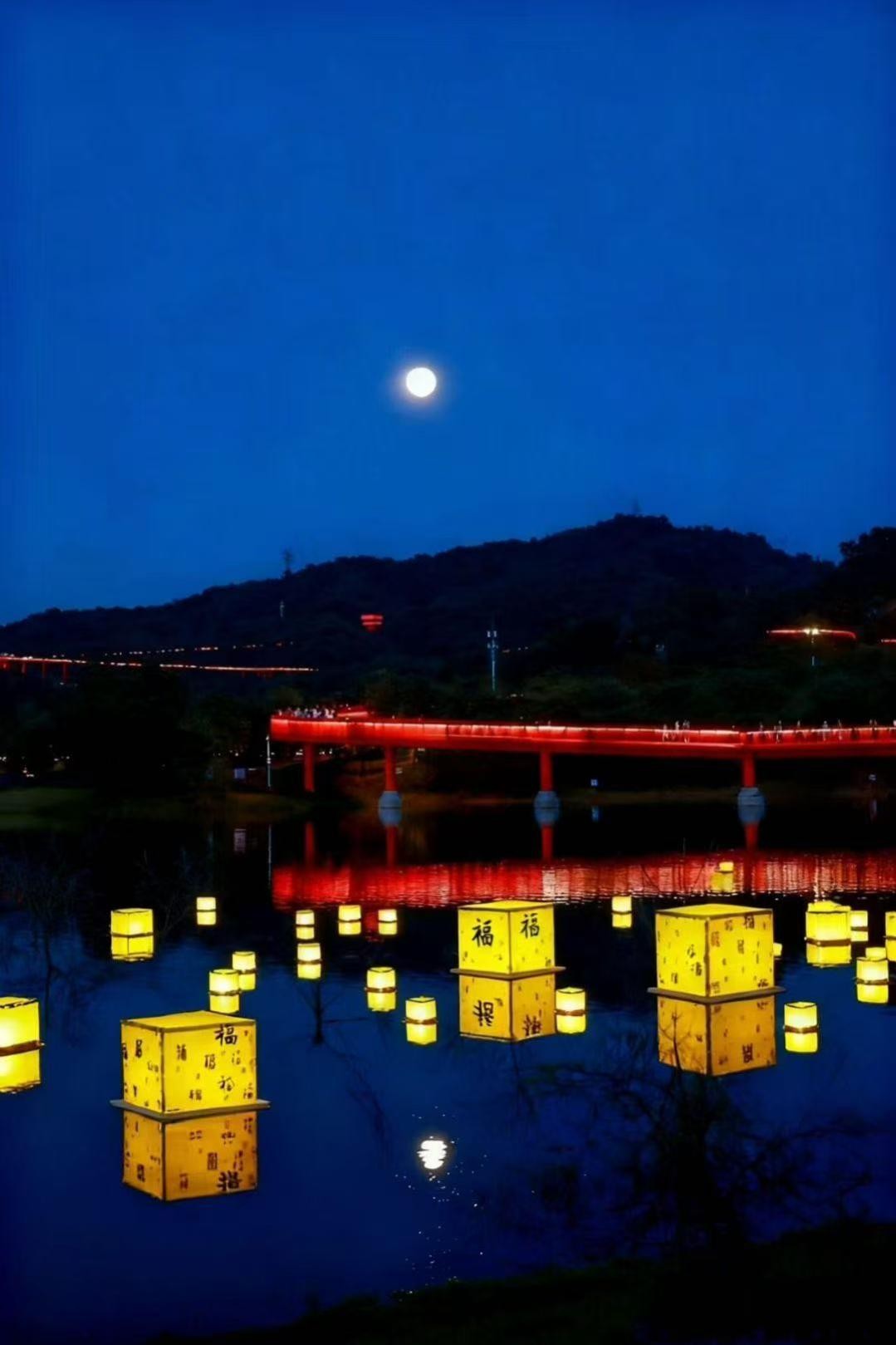 特别值得一提的是,中秋之夜虹桥公园推出的“月满湖灯,共寄团圆”特别企划。碧湖之畔,市民与亲友共同放灯寄愿,盏盏湖灯映照月色,与波光粼粼的湖面交织成梦幻画卷,为中秋团圆夜增添了浓浓的仪式感与温馨氛围。