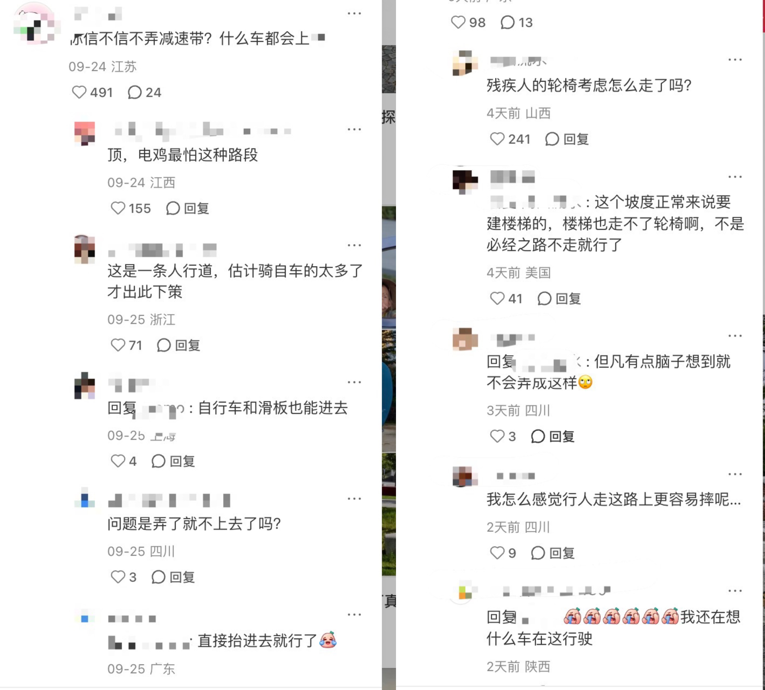 “一刀切的铺张防滑条是否可取?”有网友认为,该防滑条无法从根本上阻止车辆进入,反而可能让行人更容易摔倒。但记者注意到,也有不少声音支持设置防滑条,认为“不弄的话什么车都会上去”。