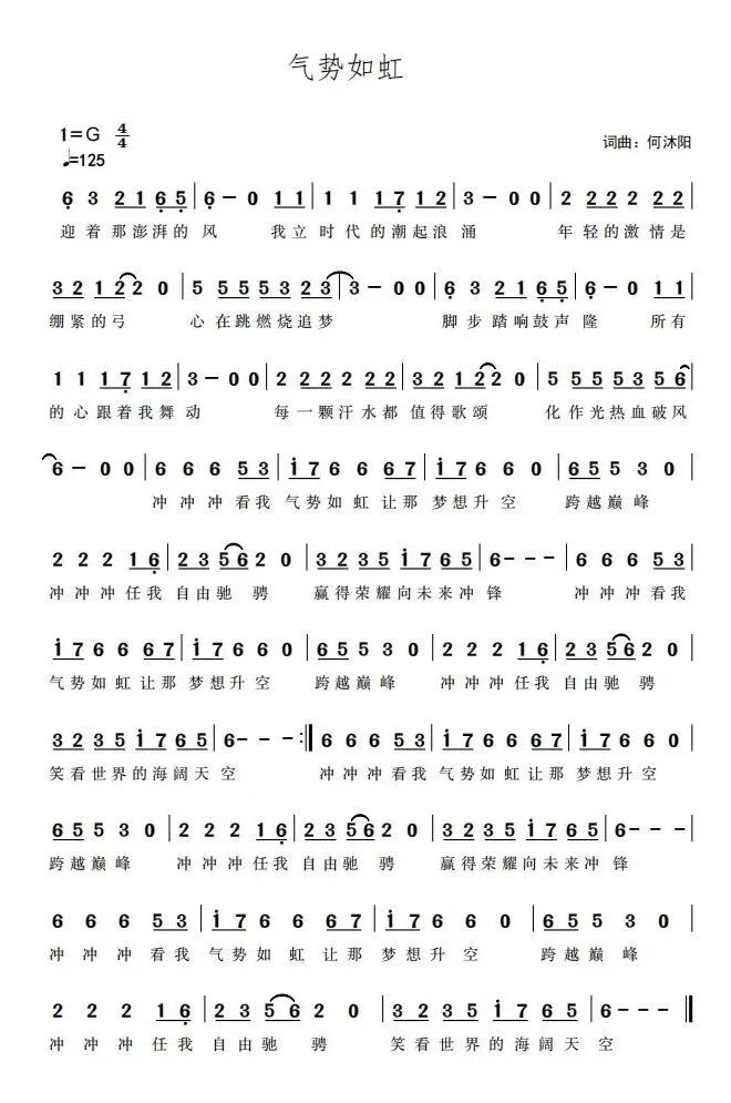 “全运会不仅是一个简单的运动会,更是一种精神的引领,为所有中国人打气。”何沐阳表示,歌名“气势如虹”既代表了体育精神,又代表了大湾区在举办全运会中的姿态和决心。