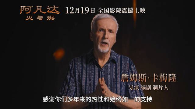 10月9日,《阿凡达》系列第三部电影《阿凡达:火与烬》宣布定档,将于今年12月19日在中国内地上映,与北美同步。