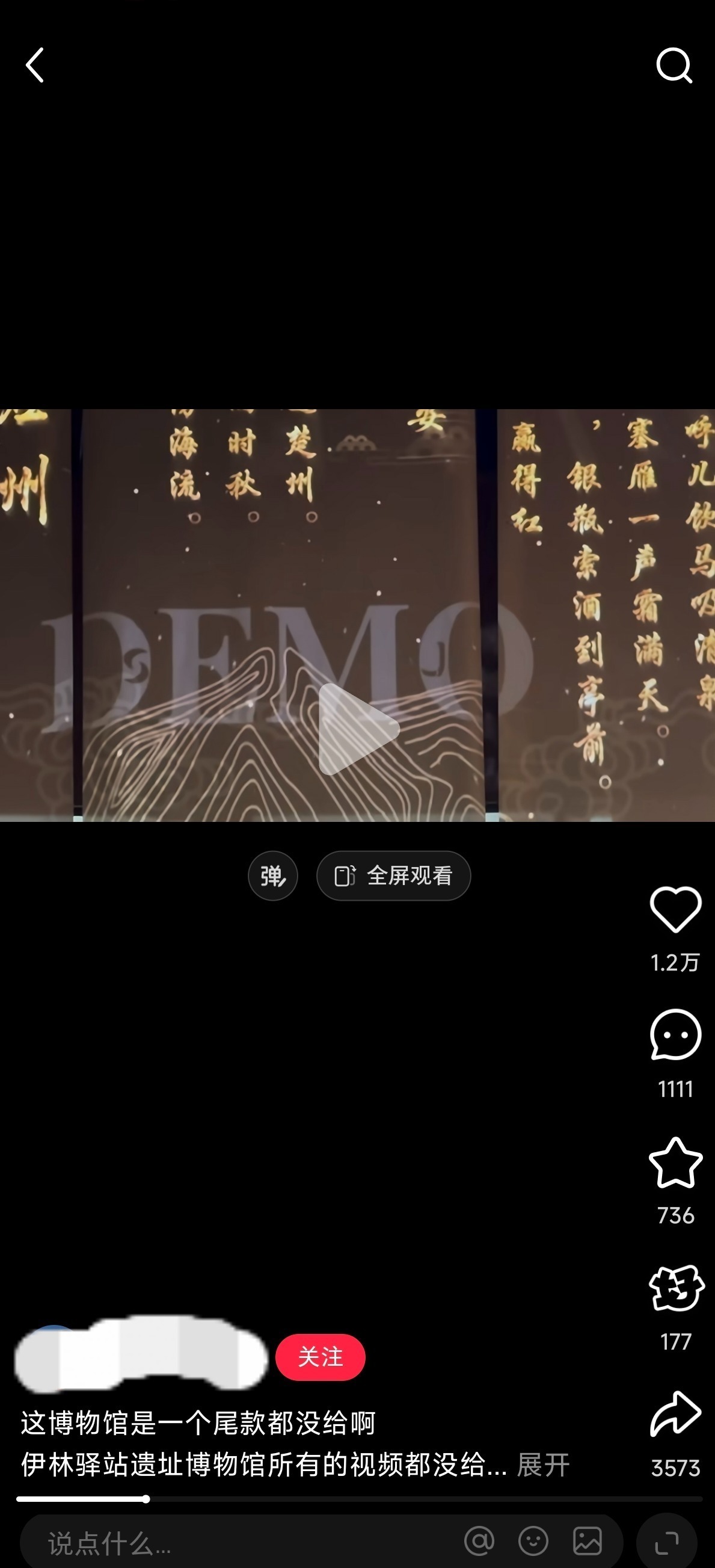 相关视频显示,在伊林驿站遗址博物馆的多个展示屏幕上,均出现带有明显“DEMO”字样的视频。“还在使用样片,是不是没有结尾款啊?博物馆内所有视频都是这样。”发帖人表示。在社交媒体上,该视频引发网友讨论。有网友称:“这也太丢脸了,博物馆不尊重视频制作方的知识产权。”另有网友认为,此举可能是博物馆未结清尾款,“以后别写DEMO了,直接写未结清尾款。”