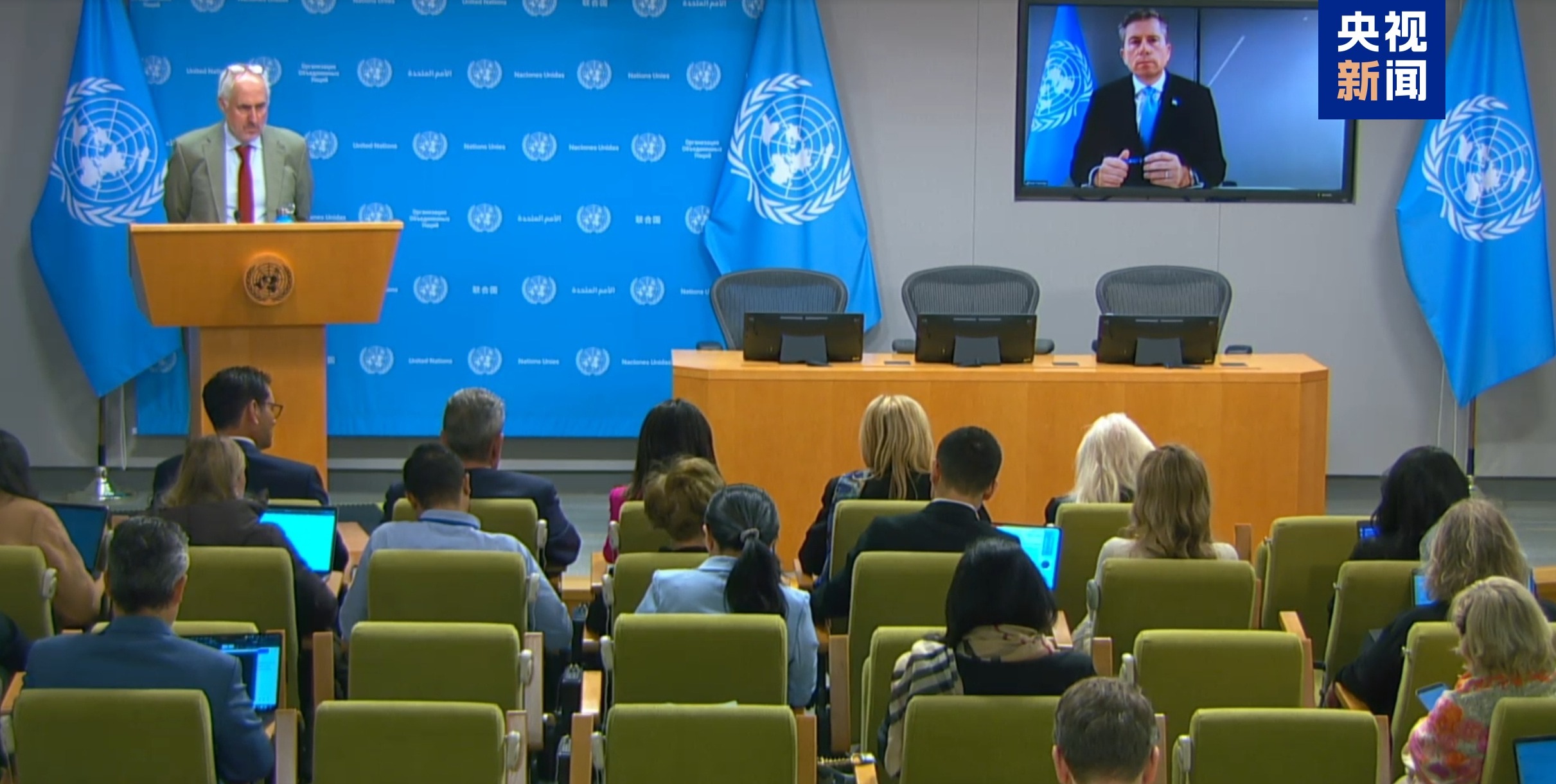 当地时间10月9日,联合国负责人道主义事务的副秘书长兼紧急救援协调员汤姆·弗莱彻通过视频连线在利雅得向媒体介绍加沙停火后的人道应急计划。他表示,这是“799天以来的首次希望时刻”,联合国系统已全面启动行动,准备在未来60天内向加沙地区大规模运送救援物资。