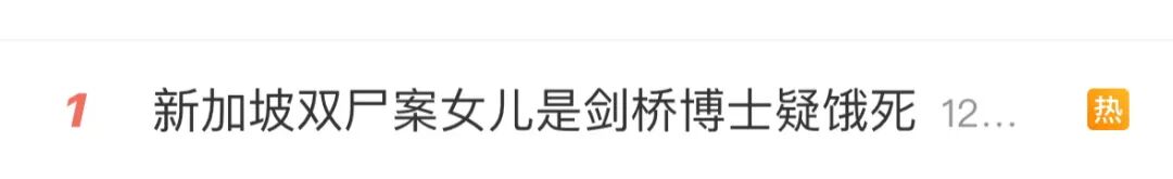 近日,新加坡盛港一处公寓发生一起双尸案,七十多岁的父亲在卧室中化为白骨,同住的47岁女儿徐娜(音译)则倒毙在客厅门边,两人死亡时间相差约一个月。相关话题冲上热搜榜第1位。