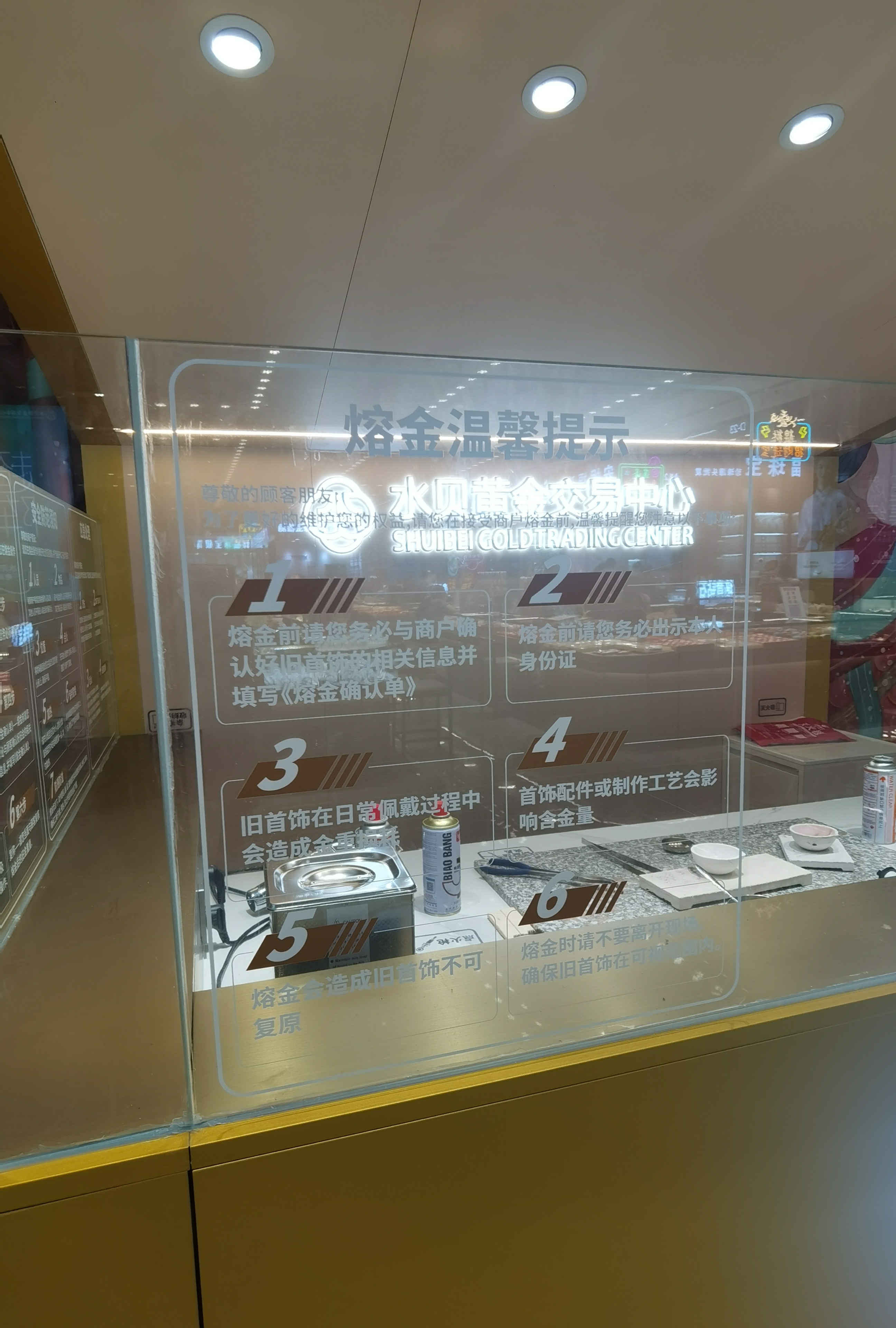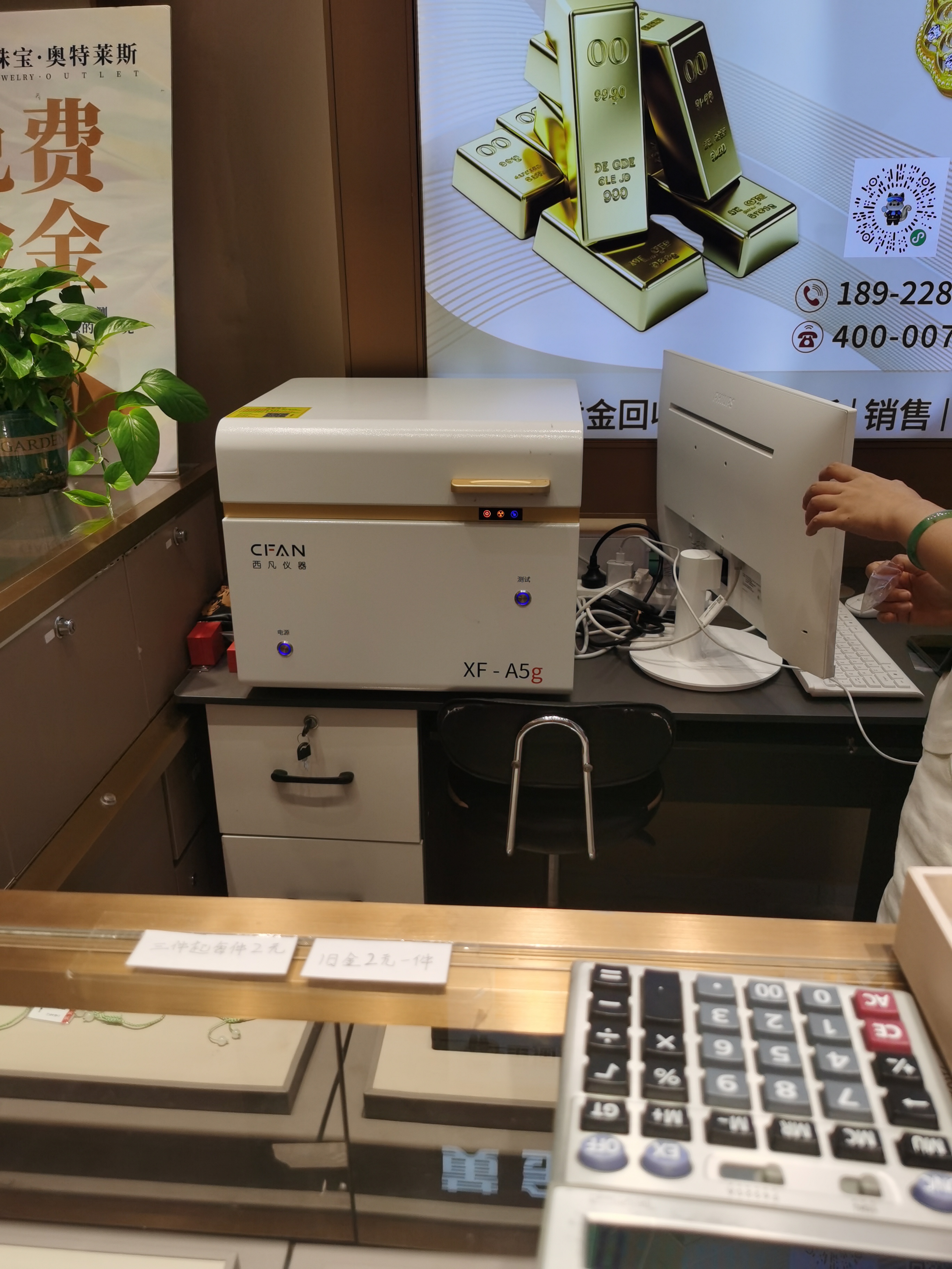 一家专营黄金回收业务,在全国都有分店的“金淘淘”将深圳总部店开在了IBC MALL首层,前来检测黄金的客人络绎不绝。记者看到店员接过客人手中的金饰放进检测仪器,大约18秒即能初步检测出金饰的黄金含量是足金、76.23%(18K金),还是铜、镍等合金仿制品。如果双方达成回收意向,就进行到“火烧检测”这个”金指标“。