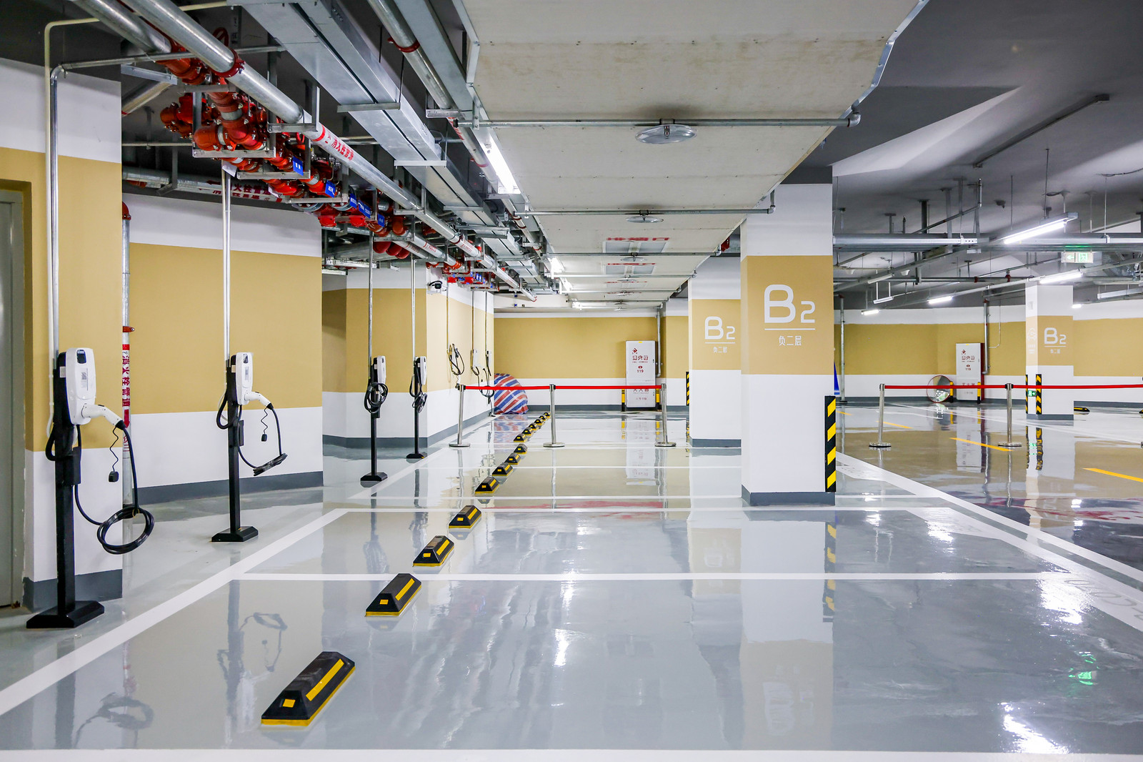 ⑥ 地下室机电综合管线运用BIM技术,建立三维模型,优化支架节点及管线布局,地下空间净高合理、布置美观。地坪漆采用无溶剂高性能环氧自流平工艺,为住户打造了干净环保健康的地下空间。