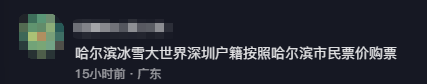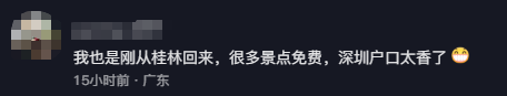 也有不少网友反映在其他城市也有过相同的经历——“我们去贵州马岭河大峡谷免门票”“去了南疆,才知道深圳身份证是最有面子的”“哈尔滨冰雪大世界深圳户籍按照哈尔滨市民票价购票”。