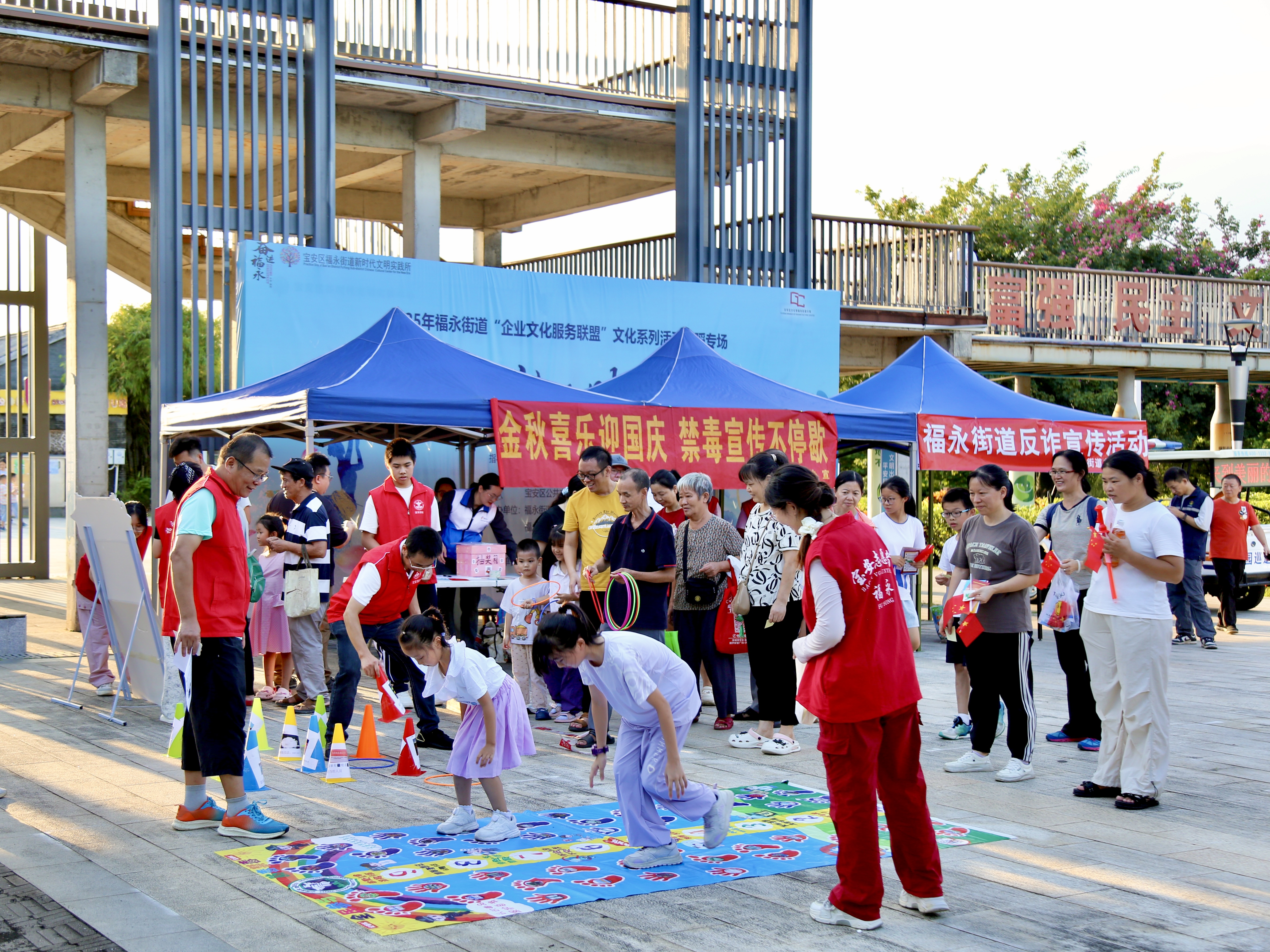 10月1日下午,福永街道禁毒办联合平安法治办(维稳综治组),以国庆、中秋双节为契机,在立新湖公园开展法治教育主题趣味游园活动,用群众喜闻乐见的方式传递法治知识,并在浓浓的法治氛围中共度欢乐节日。