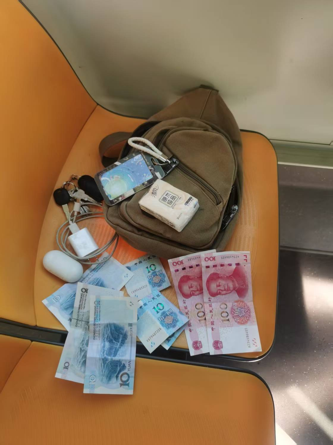 一个小时后,失主何先生赶到了田寮公交总站调度室,顺利领回了自己丢失的挎包。