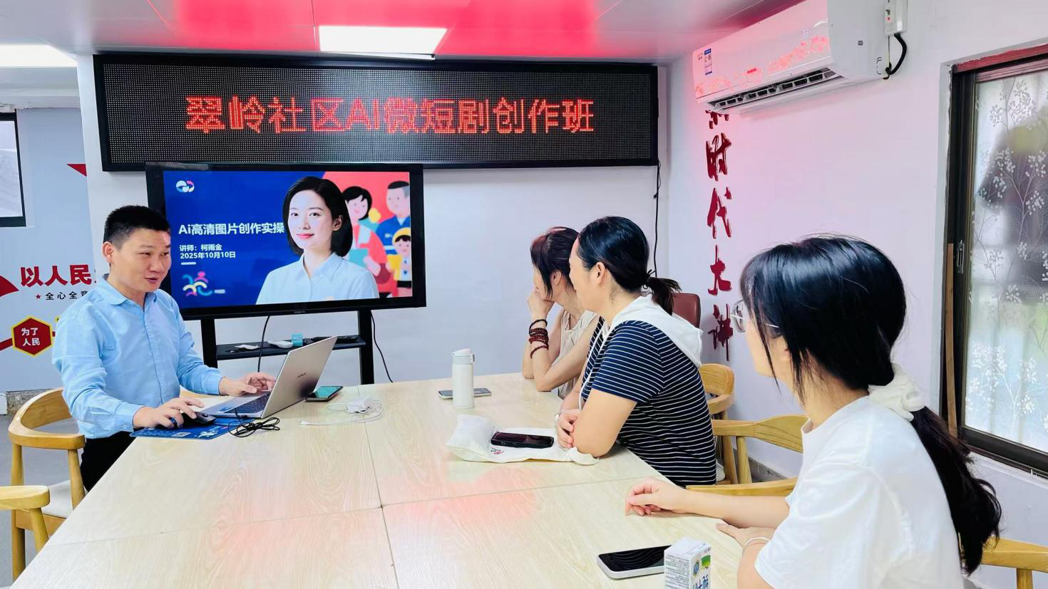 10月10日,由罗湖区翠岭社区党群服务中心与龙剑道AI研习社联合主办的“AI微短剧创作班”第三、四节课程顺利举行,14名社区居民参与其中。
