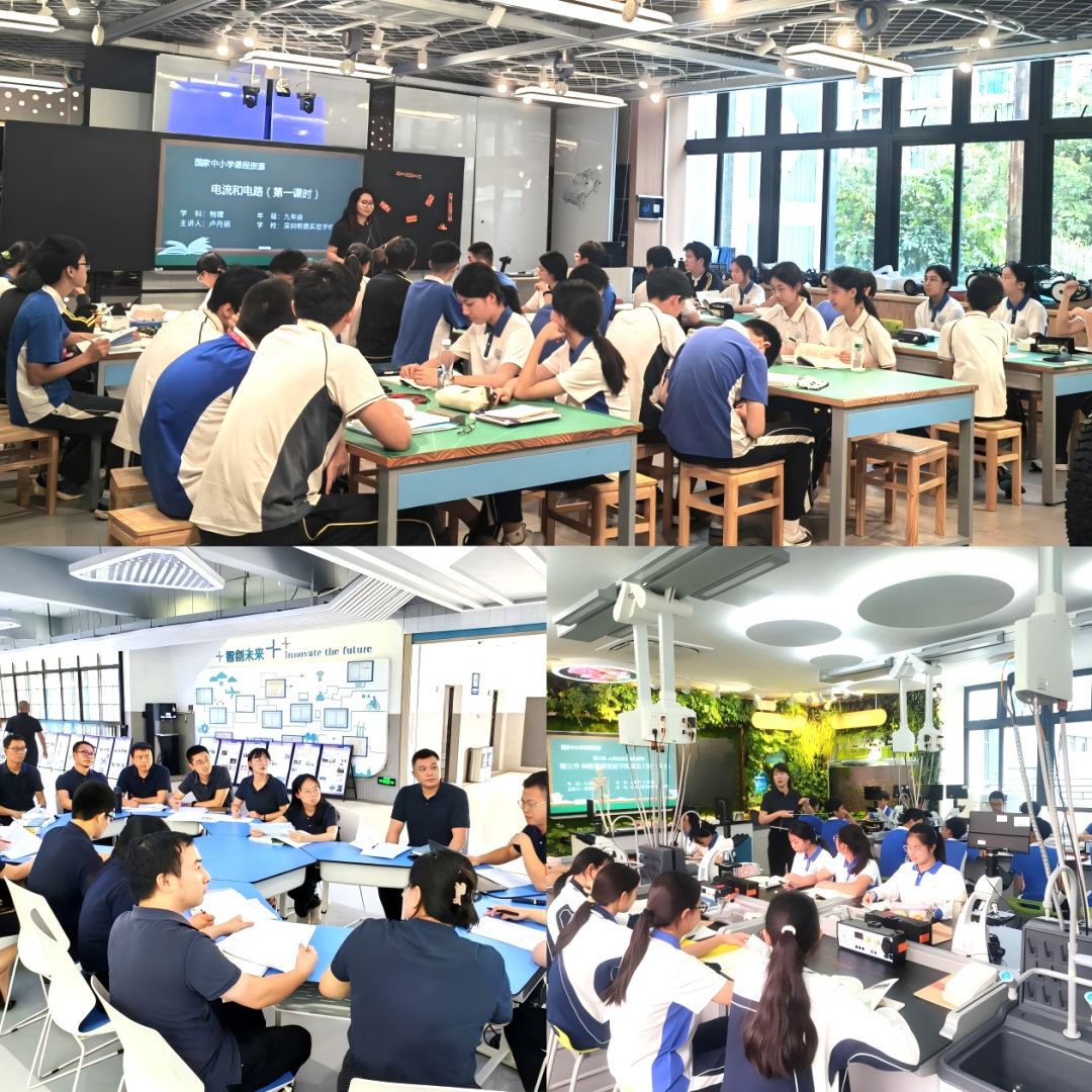 深圳明德实验学校利用国家平台构建覆盖教学、教研、学习与管理全场景的智慧教育新生态,打造了智能制造、自然生态等五大主题空间及18个创新实验室,将国家平台资源融入沉浸式场景。在人工智能实验室,该校教师依托国家平台资源,通过双师课堂与肇庆市广宁四小的学生共上一堂《AI的奇思妙想》课;在汽车工程实验室,教师应用国家平台微课、互动课堂等功能,让初中物理课《电流和电路》变得更直观有趣;在仿生机械实验室,教师带着学生学习基于国家平台的精品微课,融合生物灵感与工程技术,动手进行《仿生木牛机器人设计与挑战》,实现跨学科融合创新。