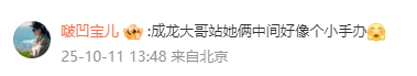 网友调侃“成龙大哥站两人中间像小手办”“最萌身高差”。