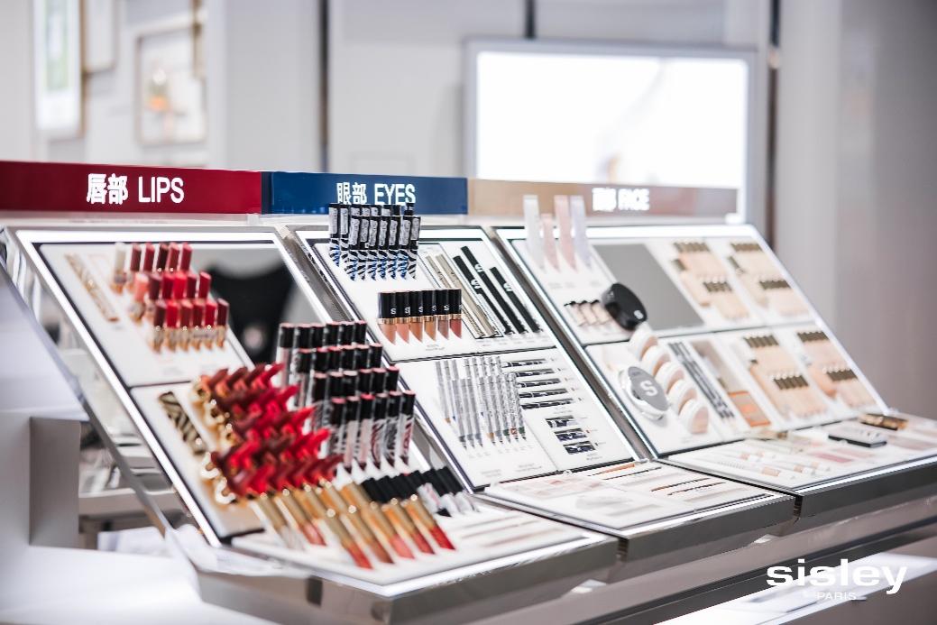 彩妆线的风格更加摩登,充满了缤纷的色彩。展示橱窗内白色照明灯呼应以红、蓝双色霓虹灯构成Make Up Corner,红、白、蓝三色调带出法兰西风情。化妆区配备全套Sisley法国希思黎的植物彩妆,贵宾可以自由体验“彩妆亦护肤”的养肤彩妆,也可以邀请专业的彩妆师为您提供一系列针对特殊场合的定制彩妆服务。