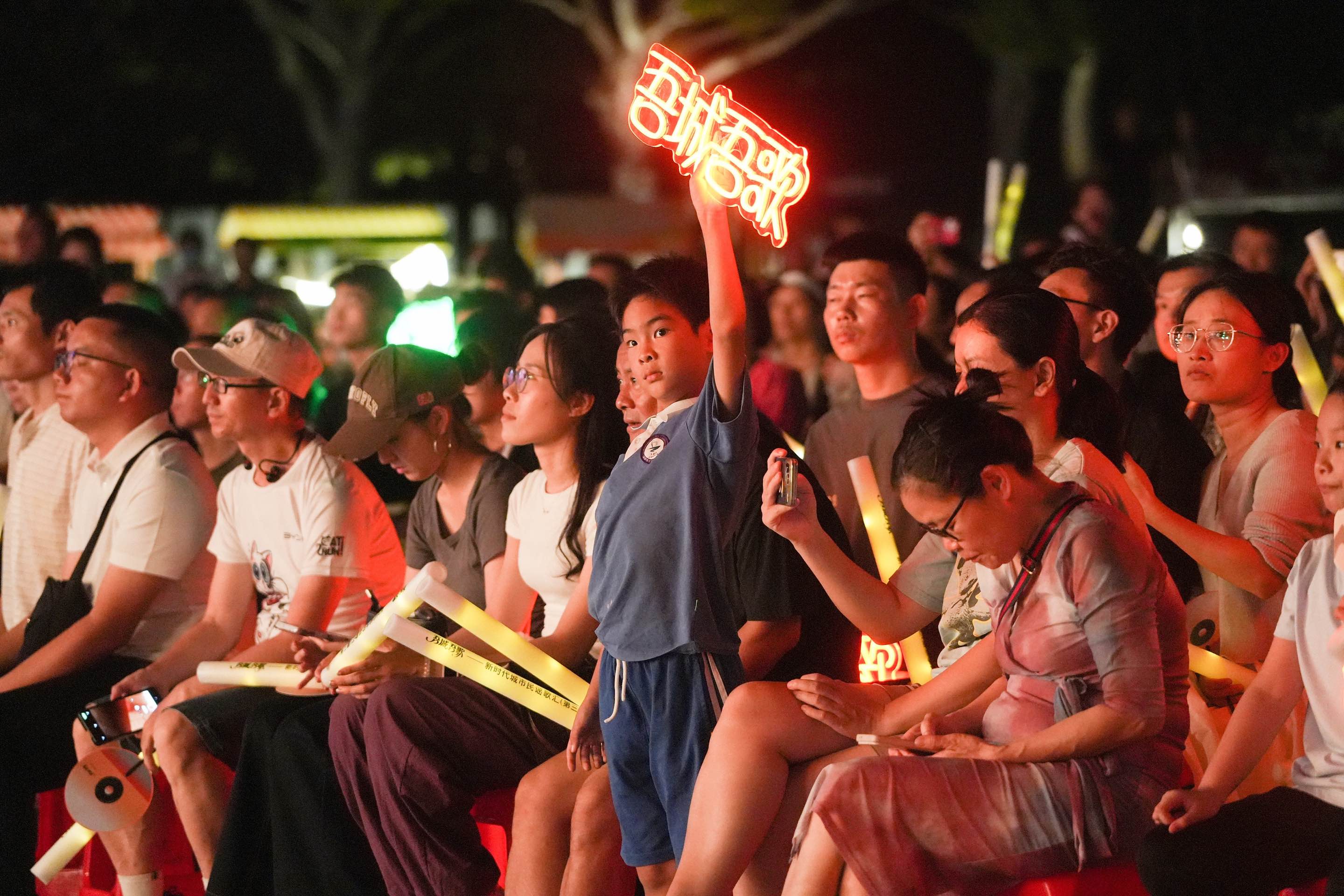 10月11日,“吾城吾歌”——新时代城市民谣歌汇(第三季)首场惠民歌会“城市民谣与诗”专场在深圳宝安欢乐港湾庆典广场精彩上演。本场歌会汇聚了多组深谙文字之美的城市民谣音乐人,他们以诗为媒、以歌为舟,将歌词凝练为意象丰沛的诗行,在舒缓悠长的旋律中,摹写新时代青年的灵魂思索。他们用歌声诠释诗意生活,让观众在诗与歌的交融中,感受城市民谣的文学魅力与其直抵人心的力量。
