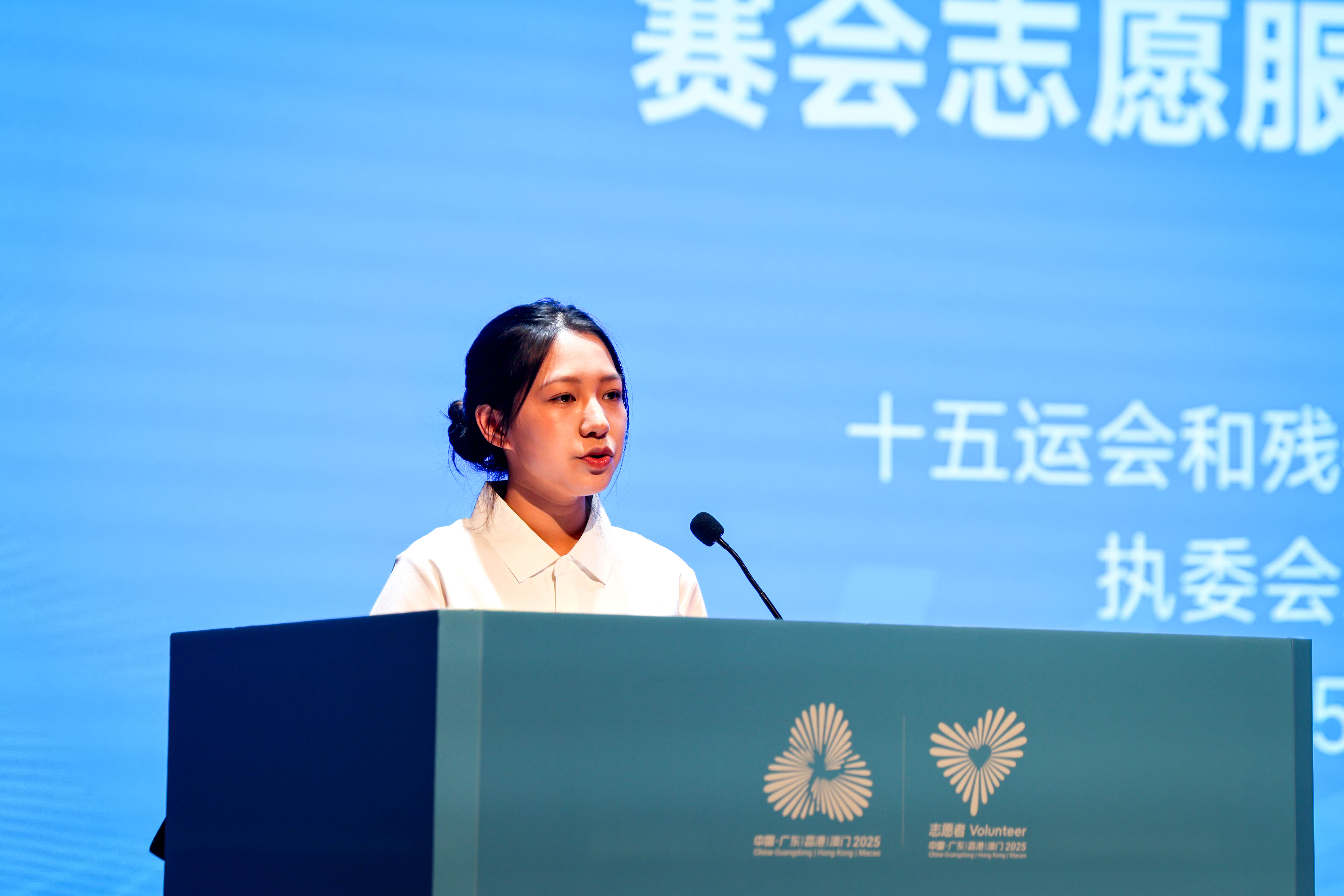 来自深圳大学的志愿者王静怡是土生土长的深圳人,她将参与到十五运会闭幕式的服务工作。王静怡认为,在十五运会和残特奥会中,不仅能更好地发扬深圳的城市精神,还对城市形象提升带来帮助:“十五运会和残特奥会在粤港澳举办,对每一个办赛城市都是城市形象提升的契机。我了解到在十五运会闭幕式上,会有粤港澳三地同时升起国旗的环节,这个设计让我很有感触,对粤港澳来说是很好的宣传,也是家国情怀很好的体现。”