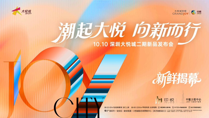 领潮不止,新篇再启!10月10日,“潮起大悦 向新而行”深圳大悦城综合体二期新品发布会盛大启幕。深圳大悦城综合体项目核心管理团队与3C战略合作服务商代表、渠道伙伴、VIP客户及业主代表、重要媒体代表等嘉宾齐聚一堂,共同见证深圳大悦城地标综合体的又一里程碑时刻——深圳大悦城·印悦公寓首创“定制成品家”全周期服务体系、大悦城上盖写字楼压轴地标新品——中粮·大悦中心T1栋正式亮相。