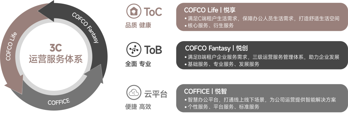 【中粮·大悦中心】写字楼压轴T1栋新品——中粮·大悦中心作为智慧商务标杆,集成悦享办公空间、悦创办公服务,悦智智慧办公系统打造3C服务。同时,将携手数十家顶尖合作伙伴,构建强大的“3C服务商品牌矩阵”,助力企业跃阶成长。