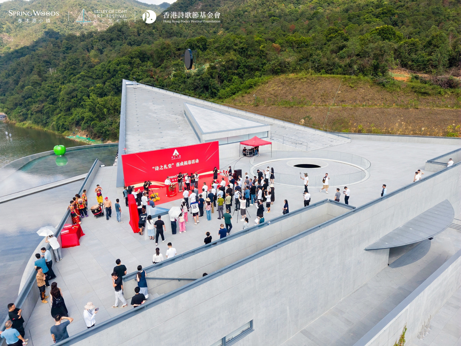 伴随礼堂揭幕,为期7天的首届光之艺术节同步拉开帷幕。首届「光之艺术节」x「浮标.香港国际诗歌之夜」由光之艺术节荣誉导演--张纪中、香港国际诗歌之夜发起人——诗人北岛、光之艺术节总策划--胡奎然、特邀嘉宾——刘家琨、张永和、Juergen Kursawa、Juan de la Rubia组成组委会,带来国际先锋、国内前沿的一场艺术盛宴,涵盖《漫步》《浮影之思》《山海浮生》《泥与火》《宠粉家族》《奇遇行者》《皮特先生的马戏团》《以爱之名》《光的奇幻之旅(光影水幕秀)》《光与诗人的漫步》《绚烂烟花秀》《篝火晚会》《Livehouse》《诗语落杯边(北岛签书会)》《词语的肉身:在世界与隐喻之间》《暮色诗吟.草坪诗歌音乐朗诵会》《香港国际诗歌之夜》《野草就是诗情——田野x野村喜和夫》《词语的肉身:在世界与隐喻之间》《空间营造与诗意回响——刘家琨x张永和》《管风琴大师专场——Juan de la Rubia》《管风琴大师专场——Jurgen Kursawa》《古典民乐会》《诗人晚宴》等几十场活动,带来一周七天不间断的艺术狂欢。