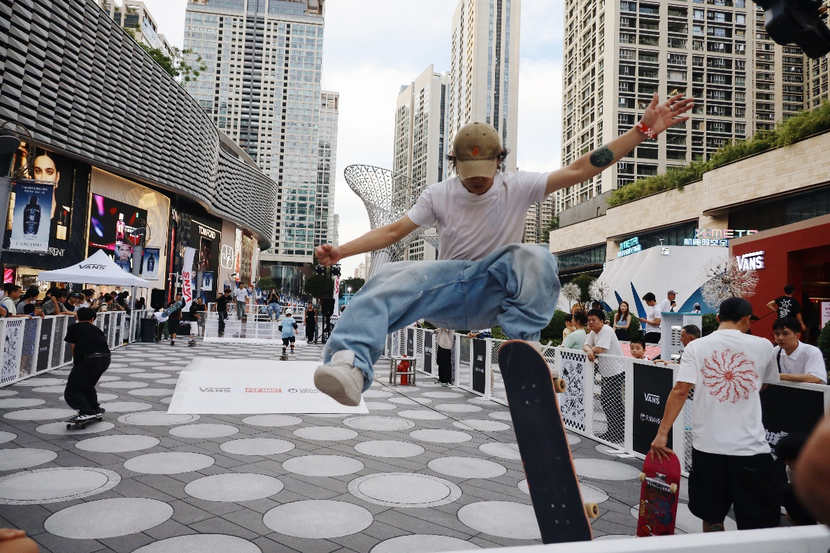 活动首日,Vans倾力打造的夜滑圣地吸引了无数来往游人关注。带有SPACE MOLLY元素的透明出发台以嘻哈涂鸦风格还原街头氛围,霓虹灯带映照内嵌1000% MEGA MOLLY的滑板障碍,吸引一众滑手前来挑战。Vans签约运动员率先开板,奉上一场夜色下的高能比拼:从 Box 果酱大比拼的极限创意,到Bank to Bank的空中炫技,再到高速平地动作的速度与技巧,滑手们将腾空、翻转与冲高一一展现,在观众的欢呼声中把“Off The Wall”精神具象成一幕幕瞬间。