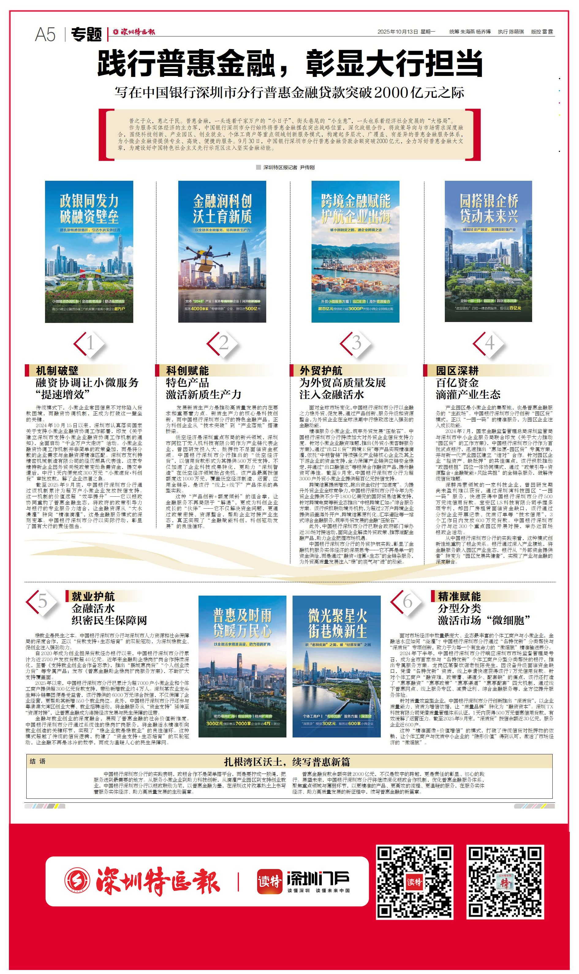 9月30日,中国银行深圳市分行普惠金融贷款余额突破2000亿元,全力写好普惠金融大文章,为建设好中国特色社会主义先行示范区注入坚实金融动能。