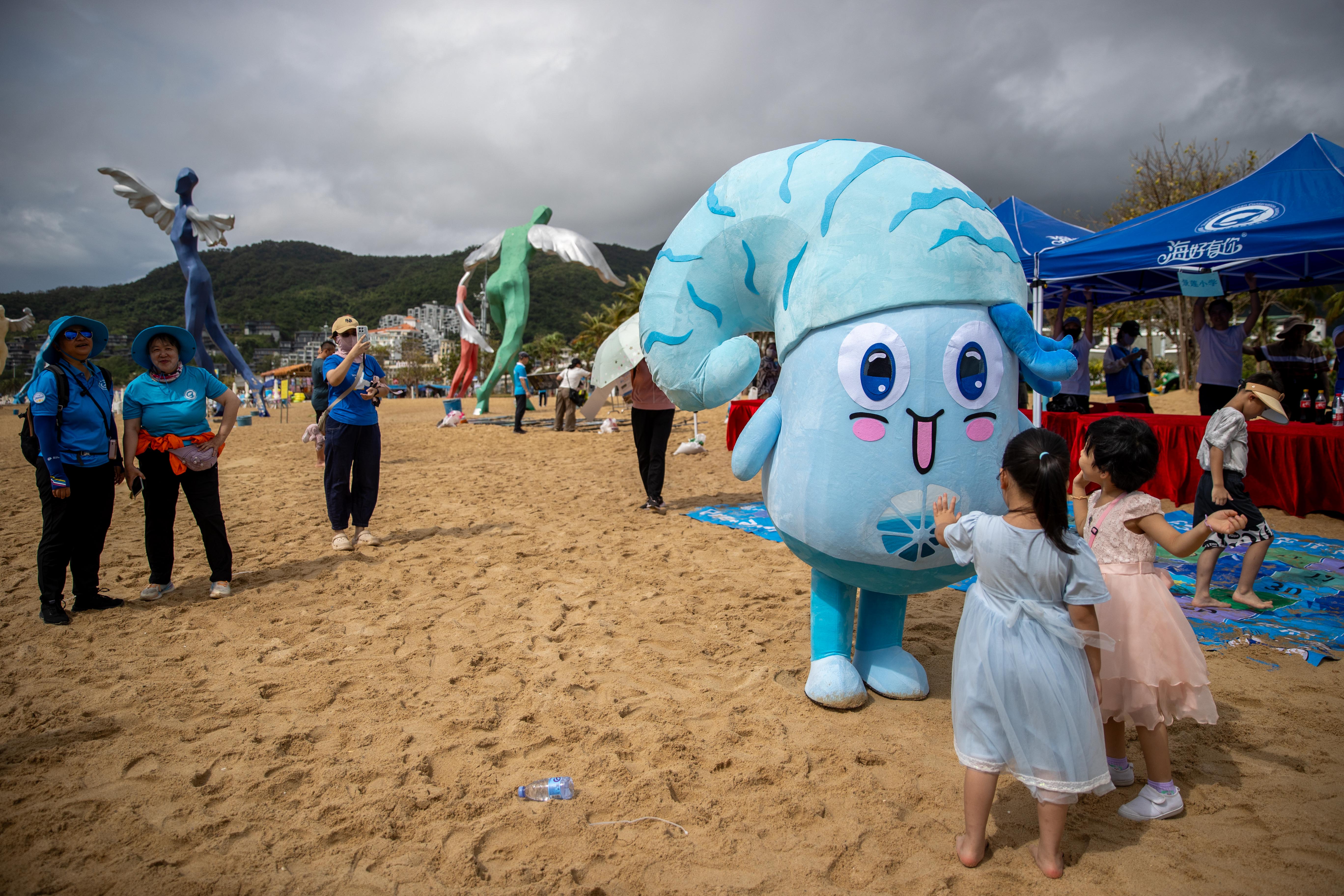 海月花园幼儿园的小朋友们带来的“生态海洋大画卷”,更是赚足目光:画卷上,蓝色的海水里游着小丑鱼、海龟,沙滩上没有一片垃圾,稚嫩的笔触里满是对海洋的热爱。而8名身穿“美人鱼”服饰的小朋友,手持“不带走海洋生物”“守护蔚蓝”手举牌,用奶声奶气的声音向游客科普:“叔叔阿姨,贝壳留在海里才是家哦!”软萌的模样搭配真诚的话语,让环保理念变得格外暖心。