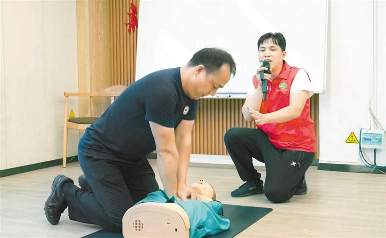 与此同时,“‘家’倍安心”家庭健康指导员培训聚焦提升居民家庭健康管理能力,面向赖屋山新村、阳台山庄、赖屋山东区、宝山新村四个片区,分4场开展,共培训120名居民。活动创新采用“党员+网格员+楼栋长”组织模式,充分发挥基层骨干的带动作用,实现重点片区全覆盖。培训内容突出实用性,围绕家庭健康生活方式、常见疾病预防与管理、急救技能三大模块展开。在“‘家’有良医、病防有道”环节,讲师结合社区健康数据,讲解高血压、糖尿病等慢病的家庭护理及流感、诺如病毒等传染病的预防措施;在“‘救’护家人,技能在手”实操培训中,专业讲师通过理论讲解、示范演示和分组练习,指导学员掌握心肺复苏、海姆立克急救法、外伤止血包扎等关键技能,并针对老人跌倒、儿童异物卡喉等特殊场景进行专项指导,确保学员“学得会、用得上”。